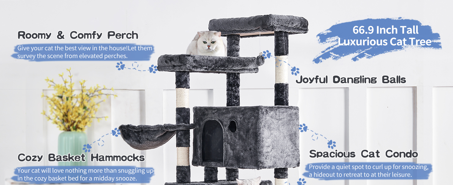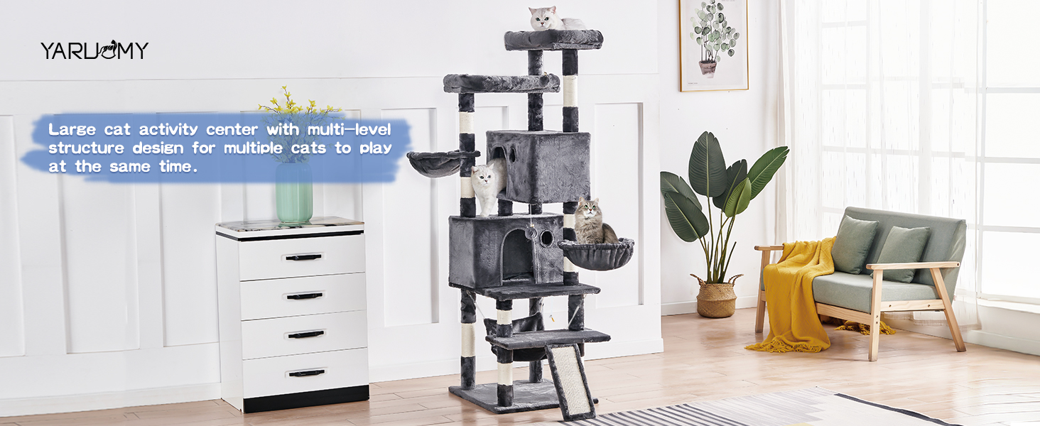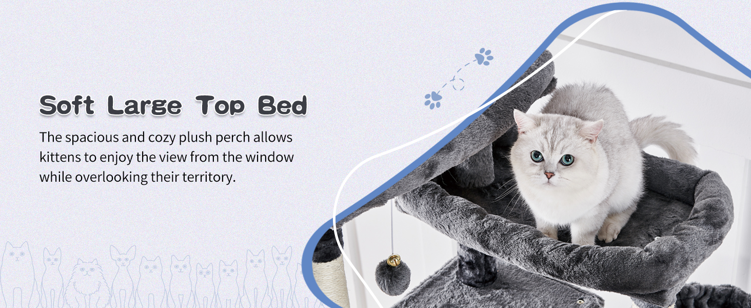 Este gran arbol para gatos es una estructura multi-nivel ideal para gatitos y gatos adultos grandes que aman la altura, el confort y la seguridad.