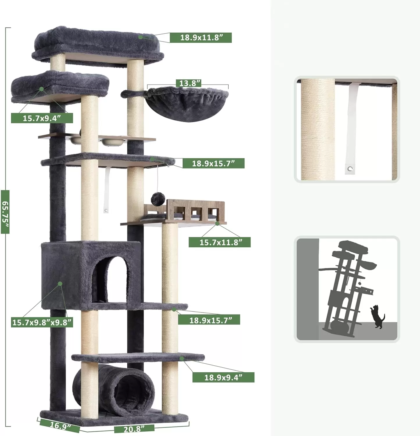 Torre Rascador Alta (167 cm): Estacion de Alimentacion y Firmeza Anti-Vuelco.