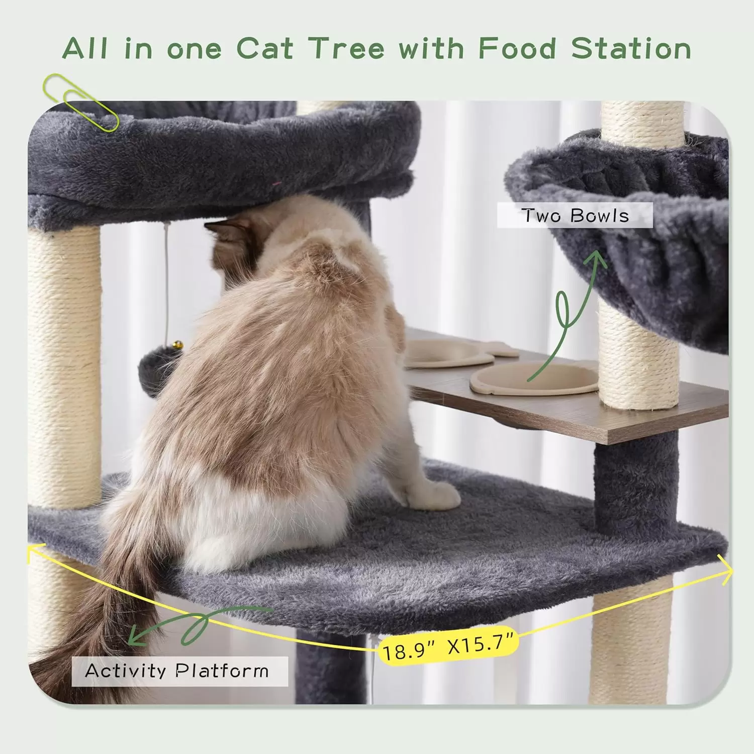 Torre Rascador Alta (167x53x43 cm): Estación de Alimentación y Firmeza Anti-Vuelco para Gatos