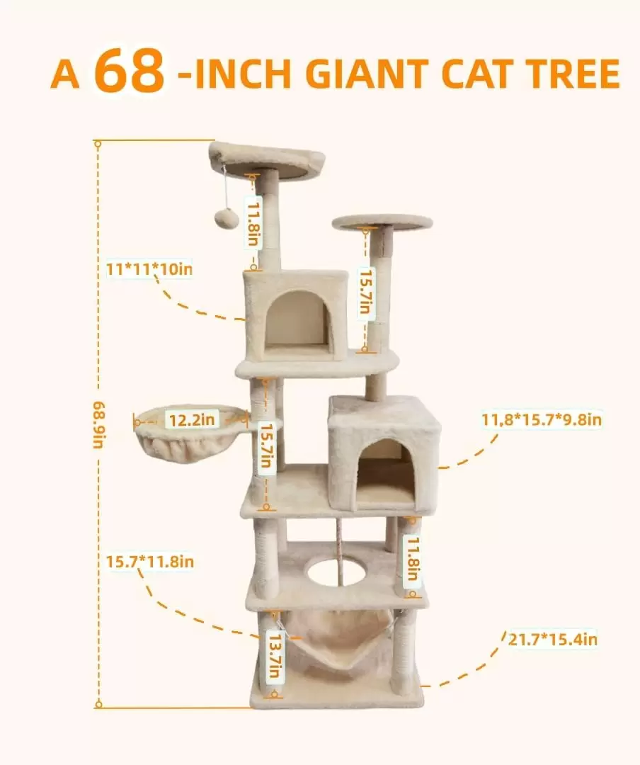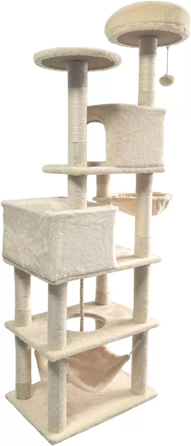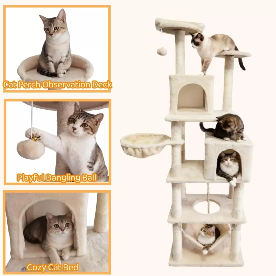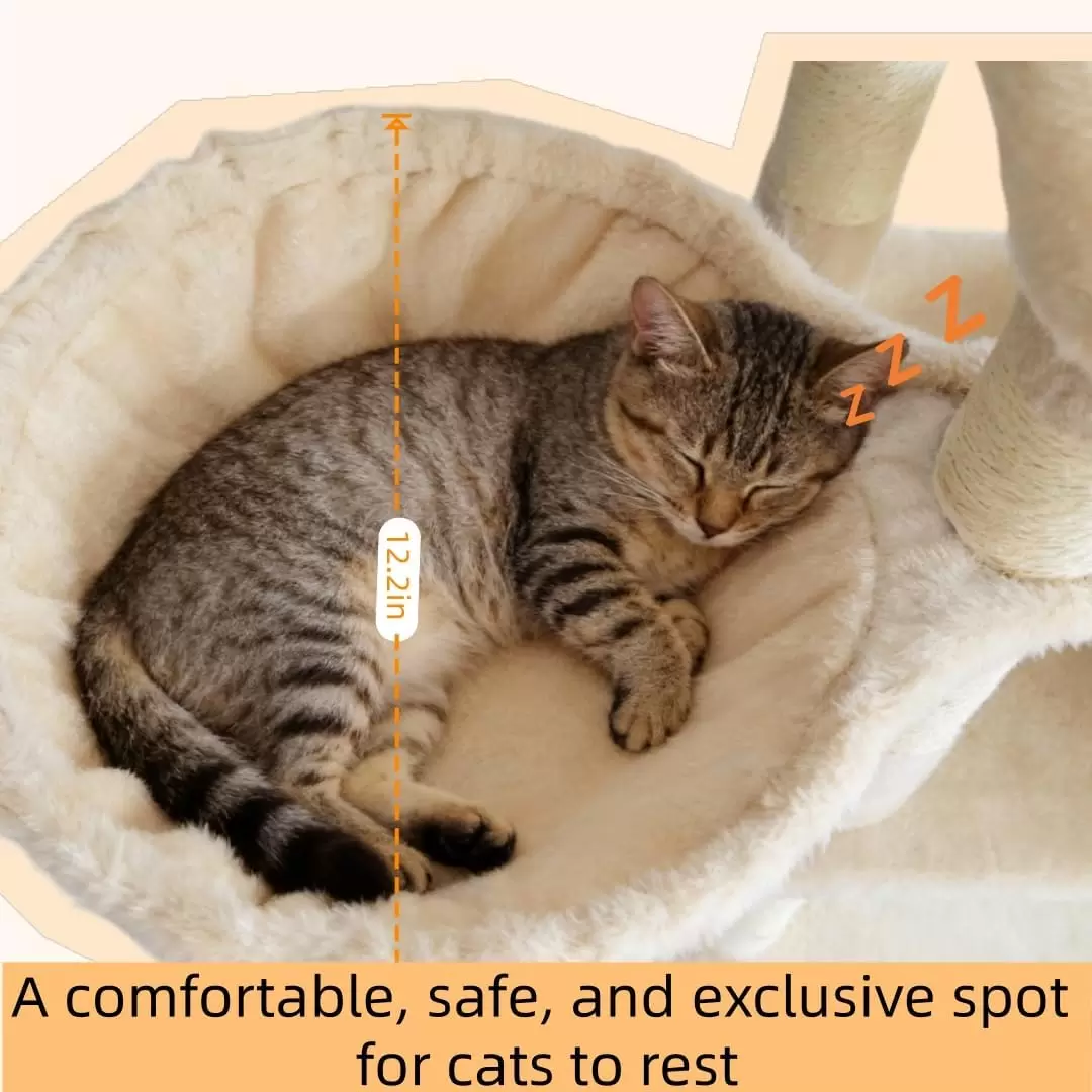 Este arbol para gatos de varios niveles esta diseñado para satisfacer los instintos naturales y las necesidades de actividad de su felino, ofreciendo un centro de entretenimiento completo en casa.