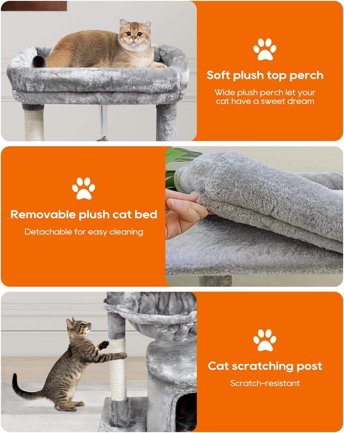[Gran regalo para tus gatos] La cubierta de felpa agradable al tacto proporciona suavidad y calidez óptima de la que tu gato nunca obtendrá suficiente. Mima a tus gatos con este árbol rascador para que no se sientan solos cuando estás fuera, y déjalos jugar y relajarse con comodidad
