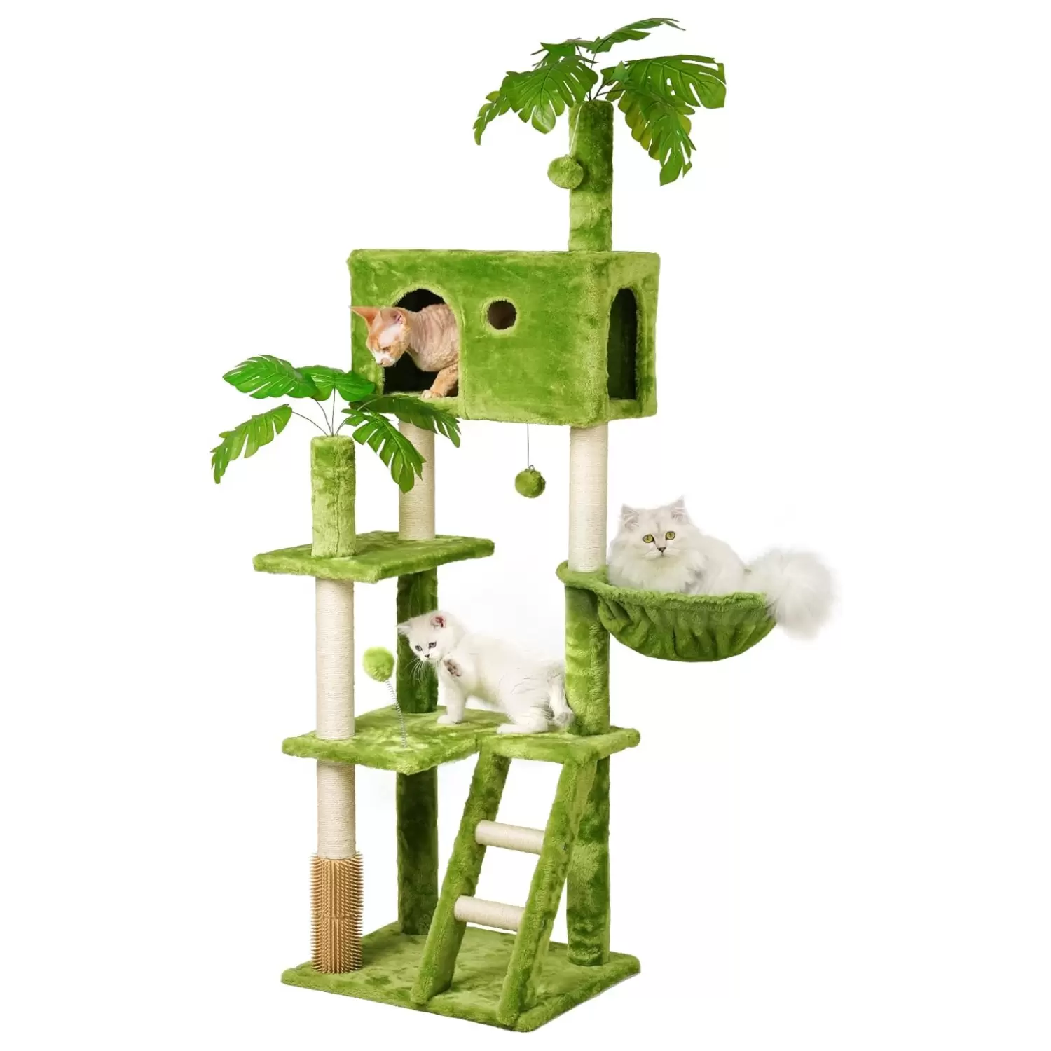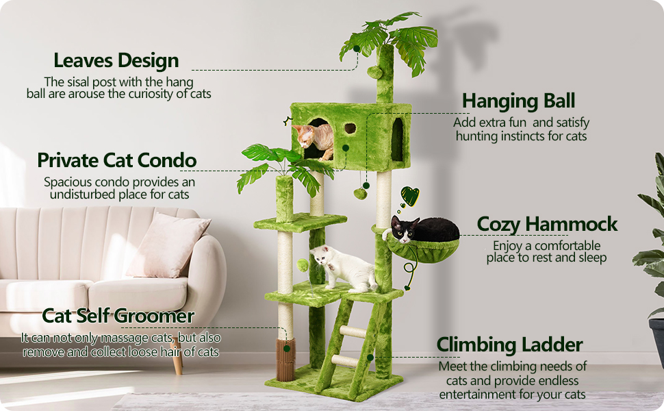 Auto Aseo Integrado: Incluye un mecanismo de auto arreglado para aliviar la picazón de sus gatos y una escalera de escalada para fácil acceso.