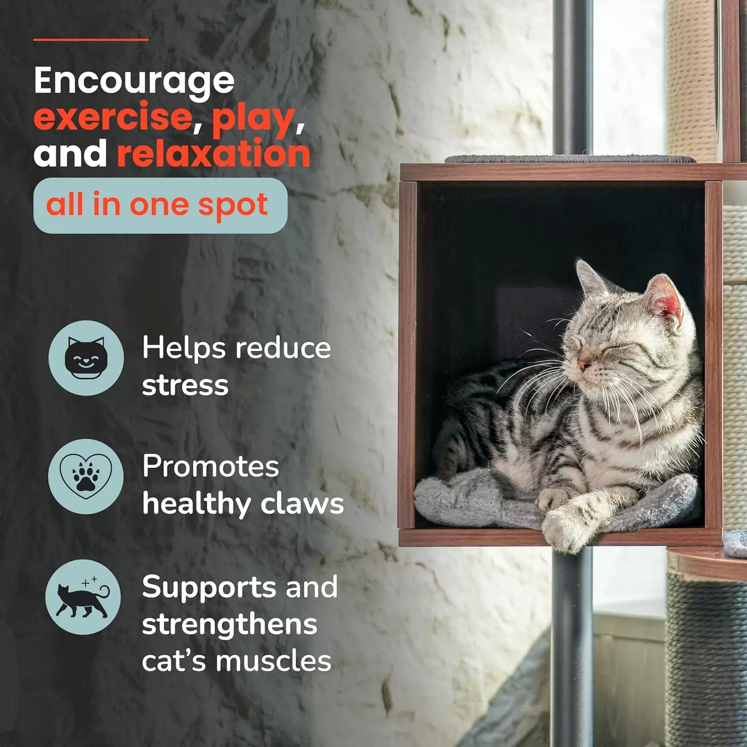Torre Rascador de Madera (151 cm): Diseño Elegante y Firmeza para Gatos Activos