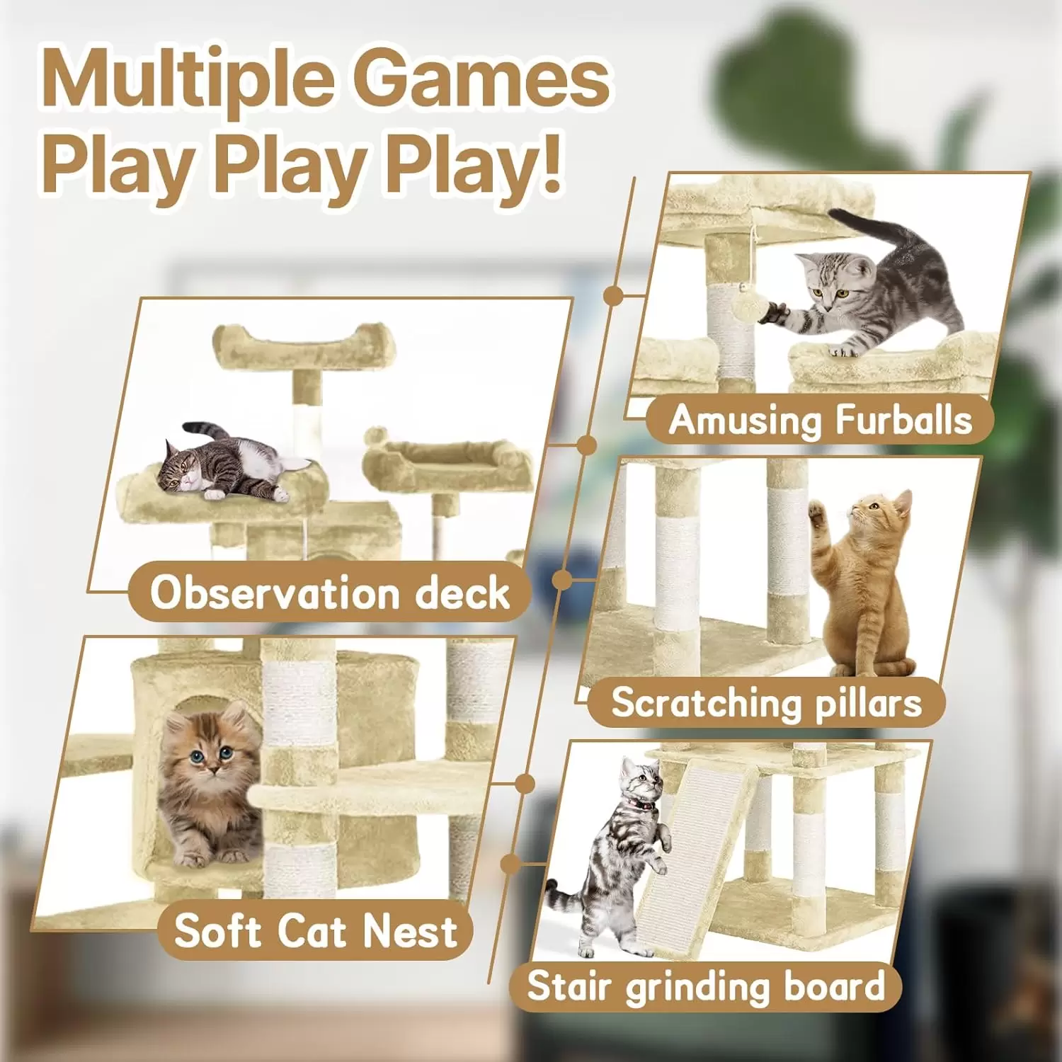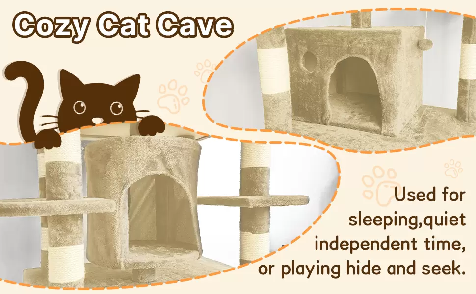 Calidez y Confort tipo Nido: Equipado con areas de descanso suaves, utiliza tejidos agradables al tacto para crear una sensacion acogedora. Es el refugio perfecto para que sus gatos descansen y duerman tranquilamente como si estuvieran en un nido.