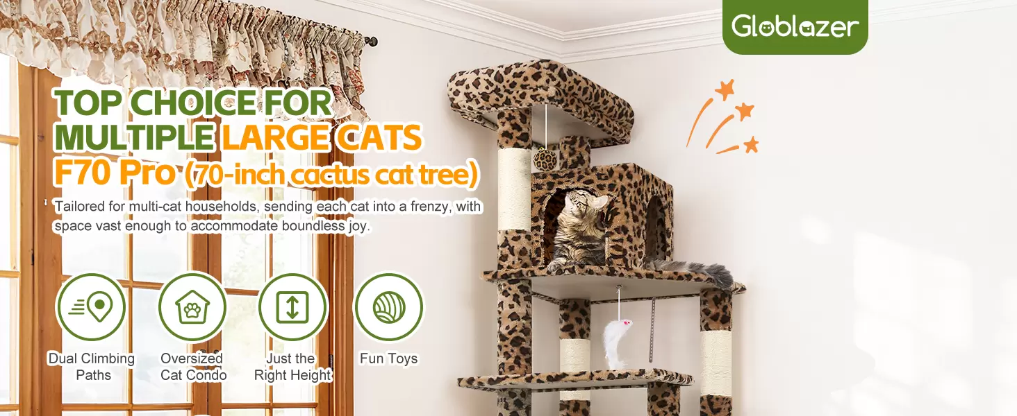Refugio Privado y Diversion Doble: Cuenta con un condominio espacioso para esconderse y descansar. Ademas, ofrece dos rutas de escalada para subir y bajar, integrando actividad fisica con 4 postes rascadores de sisal natural para el cuidado de las garras.