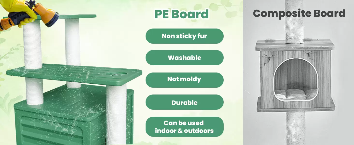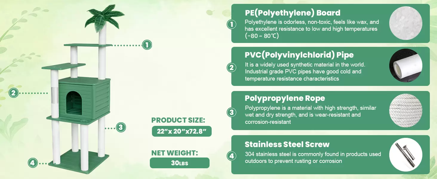 Limpieza Fácil: El árbol es desmontable. Puede quitar las piezas y lavarlas regularmente para eliminar fácilmente el pelo y las manchas, creando un mundo higiénico para sus mascotas.