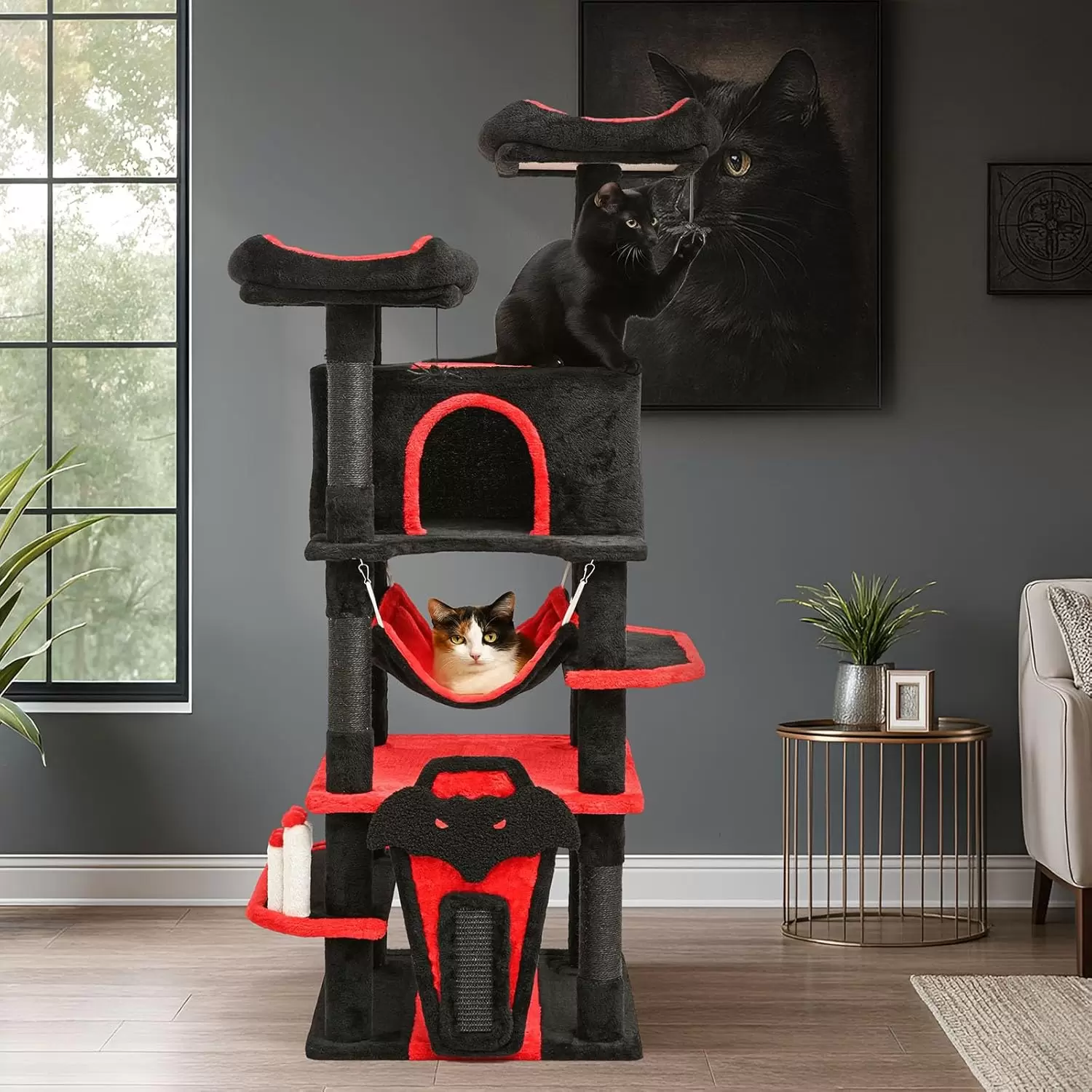Este árbol para gatos es un territorio completo para su felino, diseñado con un estilo único que añade elegancia y misterio a su hogar.
