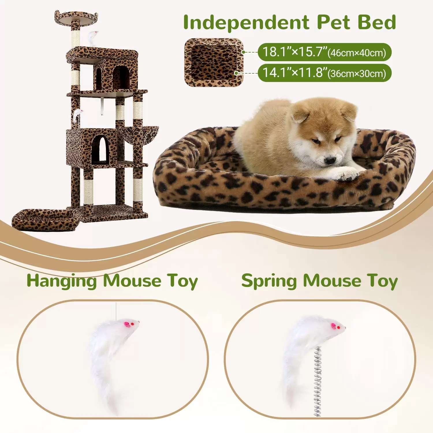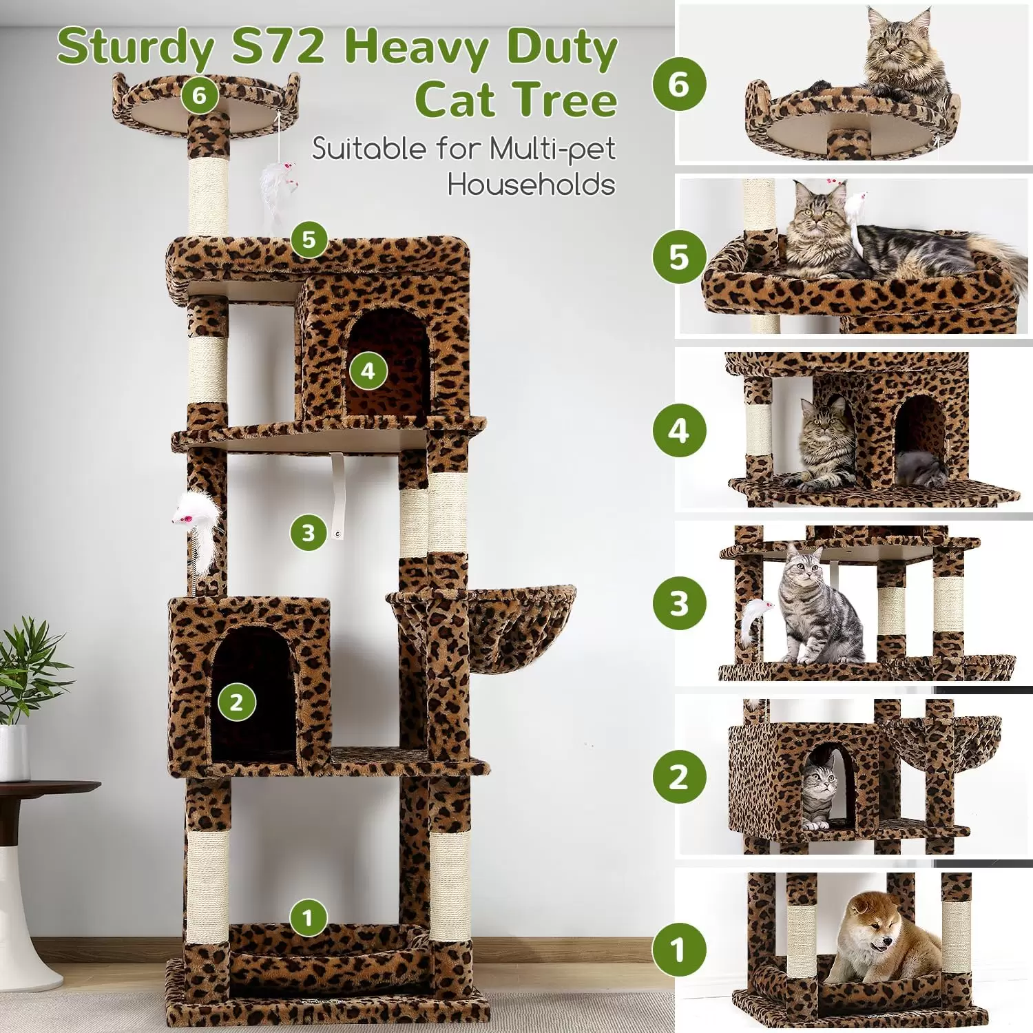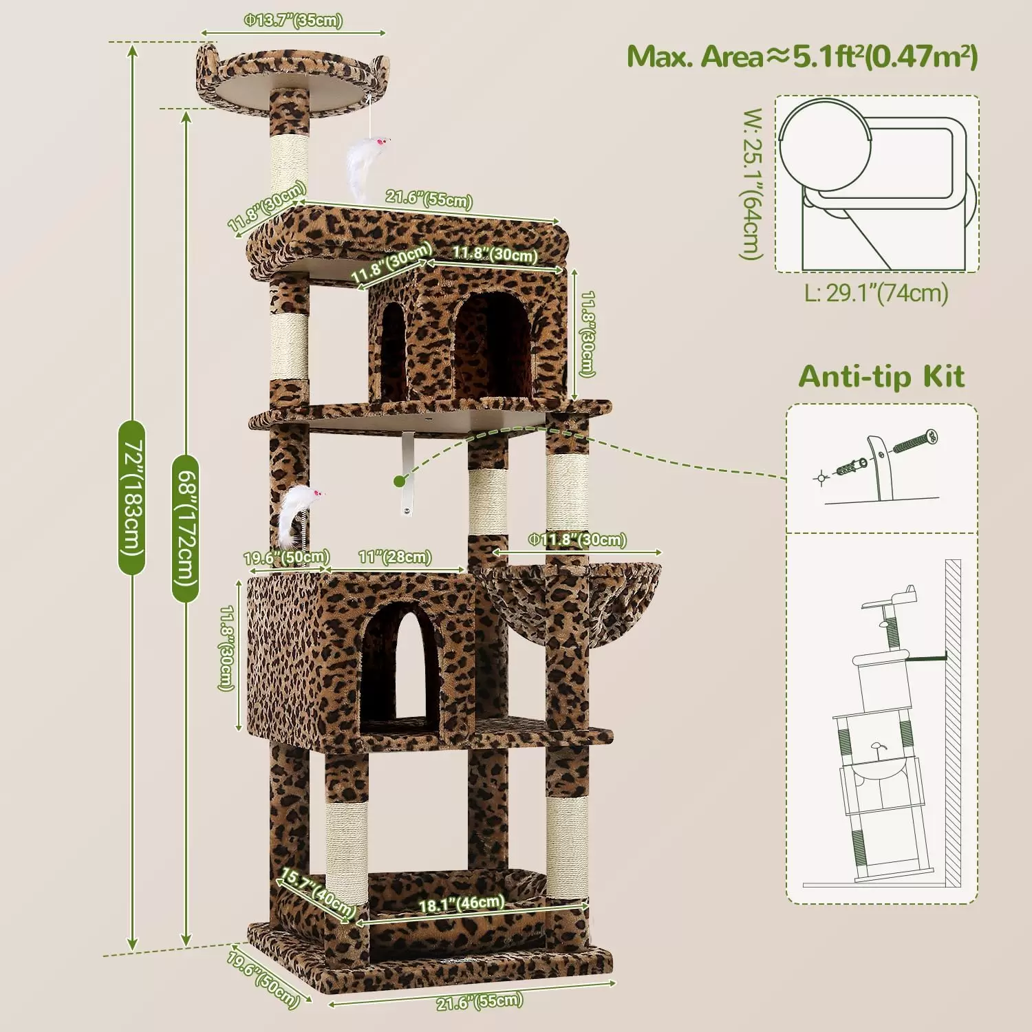 Esta torre de 183 centimetros destaca por su exclusivo estampado de leopardo y su ingenieria de estabilidad superior. Es el centro de entretenimiento definitivo para gatos grandes que buscan altura, firmeza y confort.