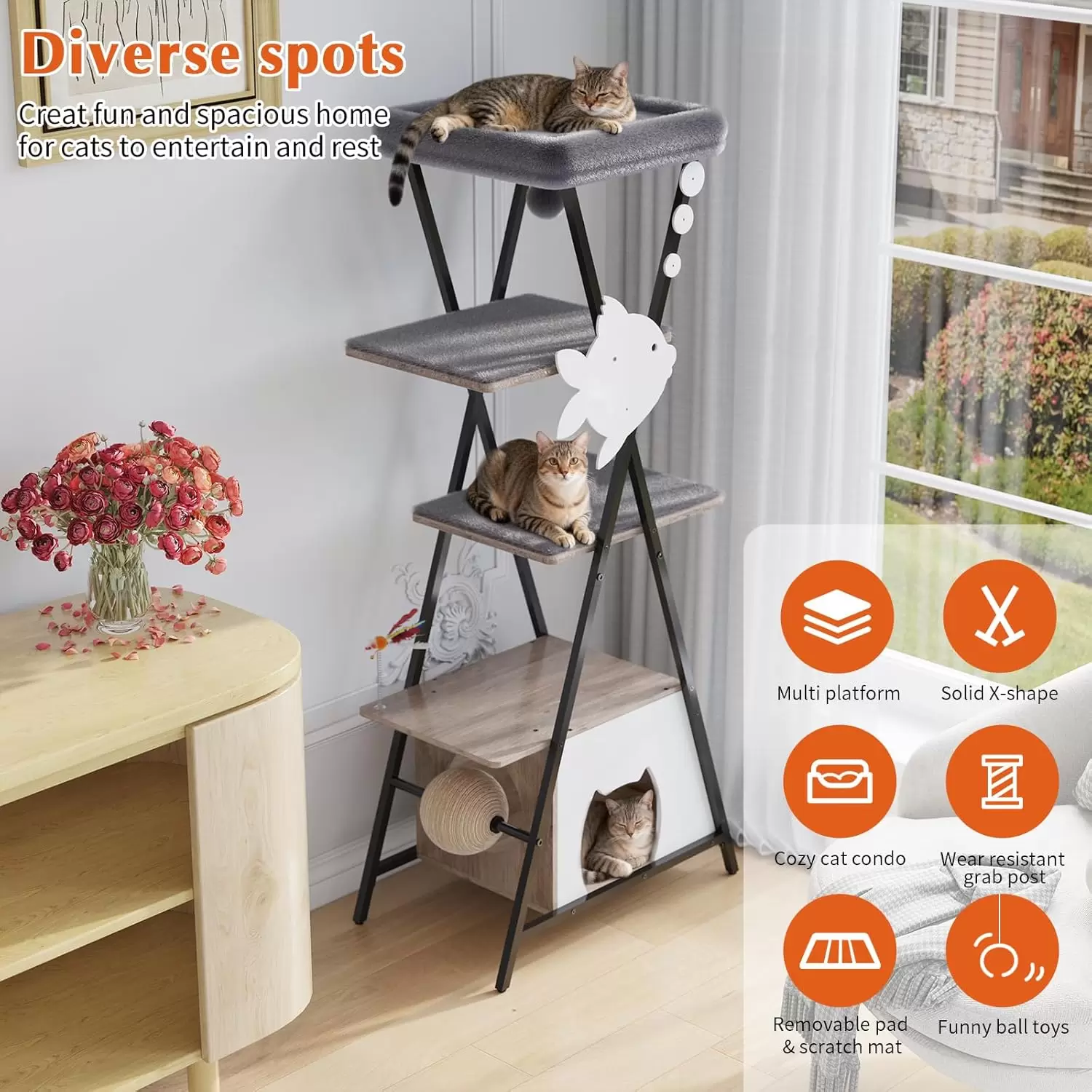 5 Niveles de Plataformas: Plataformas y un condominio espacioso para que pueda escalar y descansar cómodamente.