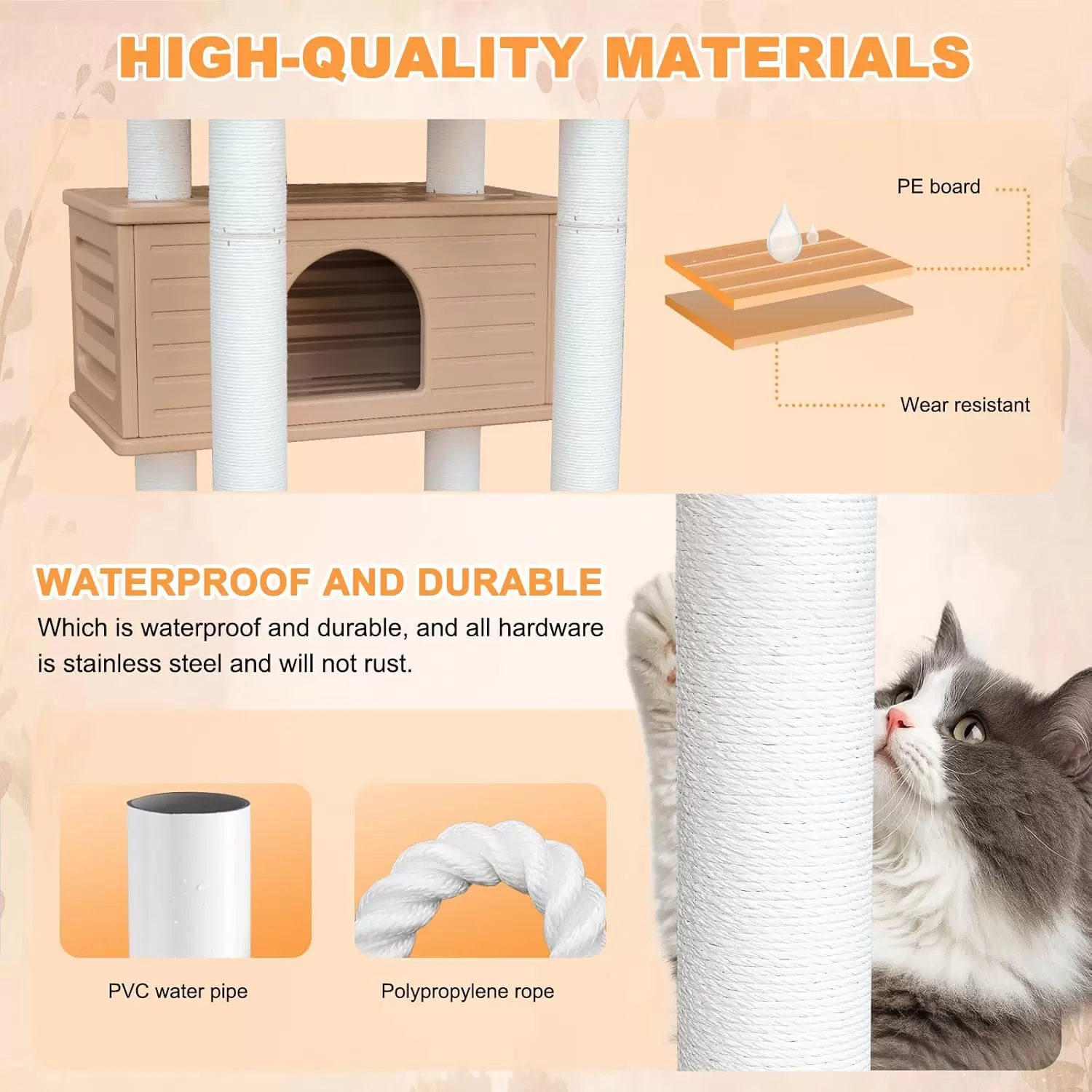 Torre Rascador para Gatos Múltiples (165 cm): Doble Condominio, a prueba de Agua y Anti-Óxido