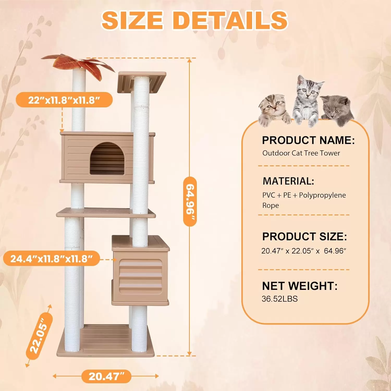 Torre Rascador para Gatos Múltiples (165x56x52 cm): Doble Condominio, a prueba de Agua y Anti-Óxido