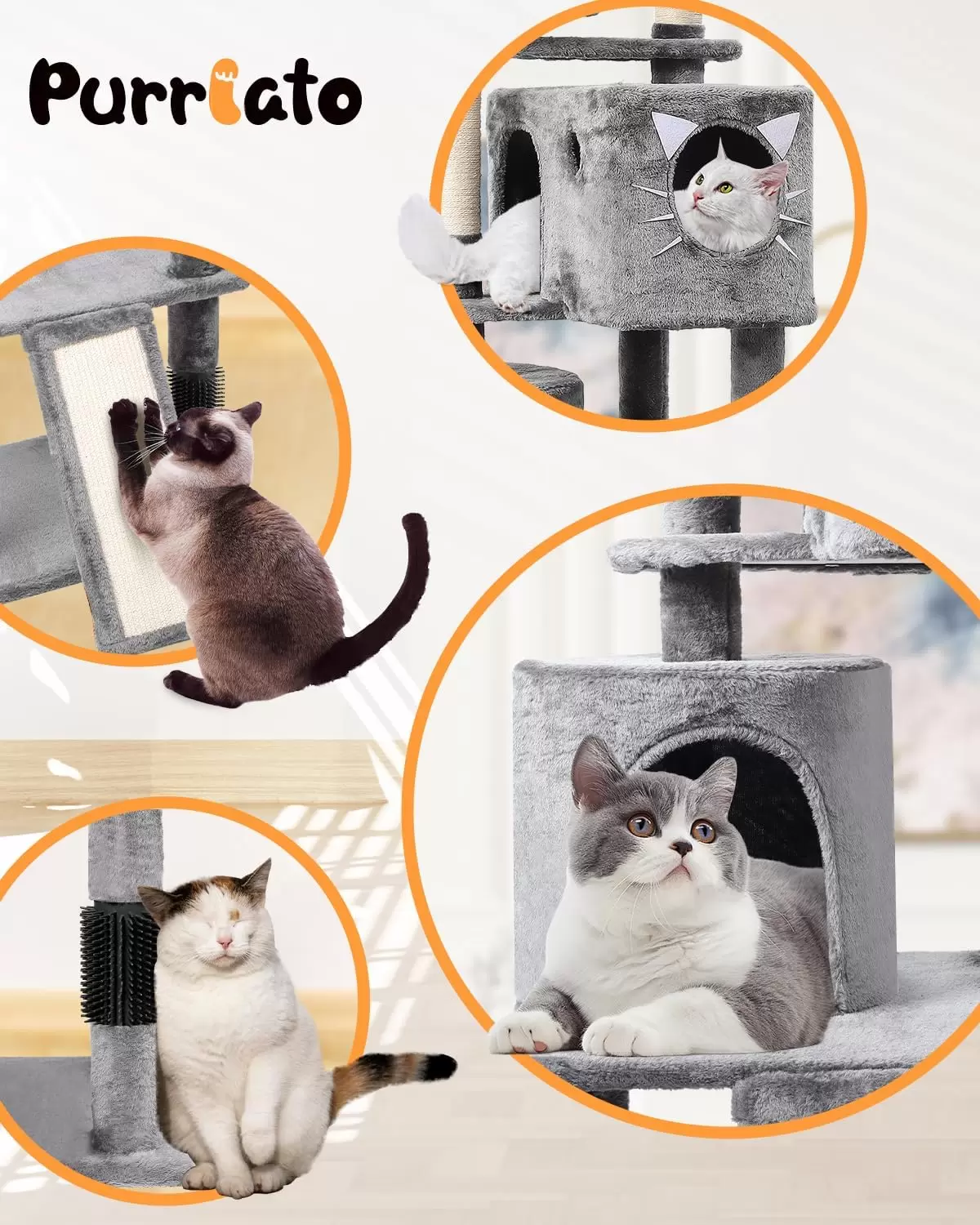 Rampa Rascadora y Postes de Sisal: A los gatos les encanta estirarse. Este arbol integra multiples postes envueltos en sisal y una rampa rascadora adicional. Esto proporciona areas ideales para satisfacer los instintos naturales de rascar, protegiendo sus muebles y manteniendo las garras saludables.