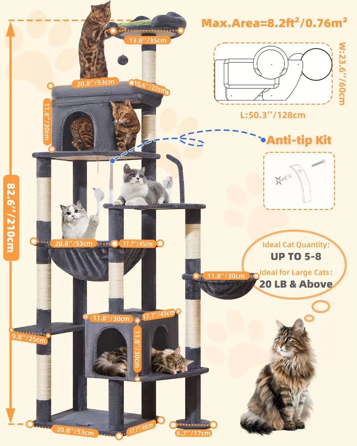 Torre Rascador Súper Estable (211 cm): Arquitectura Piramidal para Gatos Grandes