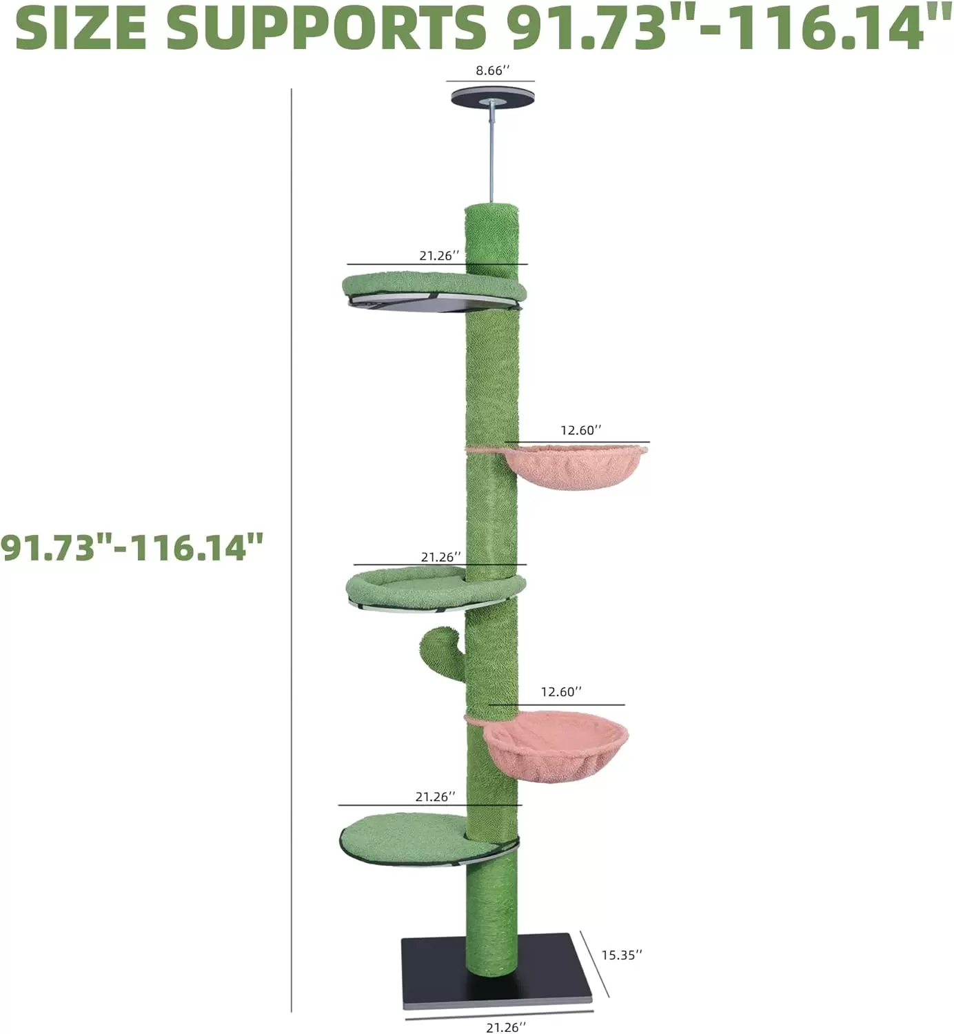 Diseño de Altura Ajustable y Estabilidad: Ajuste de Piso a Techo: El diseño es apto para habitaciones con diferentes alturas, asegurando siempre una estructura firme y segura. Seguro y Resistente: El soporte de piso a techo garantiza una estructura estable, evitando que se vuelque, lo que es ideal para hogares con varios gatos.
