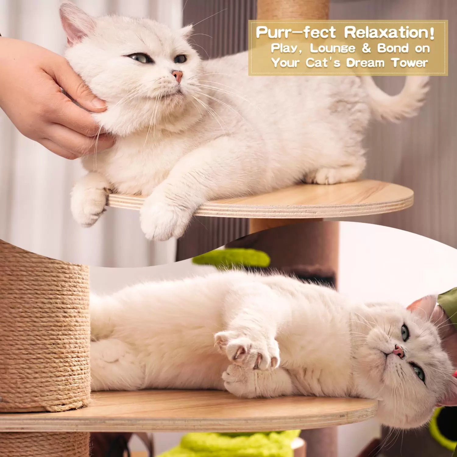 Descanso y Diversión Multifuncional: Hamaca de Lujo: Cuenta con una hamaca transparente de 360 grados, creando una cómoda zona de descanso. Condominio y Rascado: Incluye un acogedor condominio acolchado y postes reforzados envueltos en sisal, ideales para proteger sus muebles. Juguete Original: El juguete original ofrece diversión sin fin para su amigo felino.