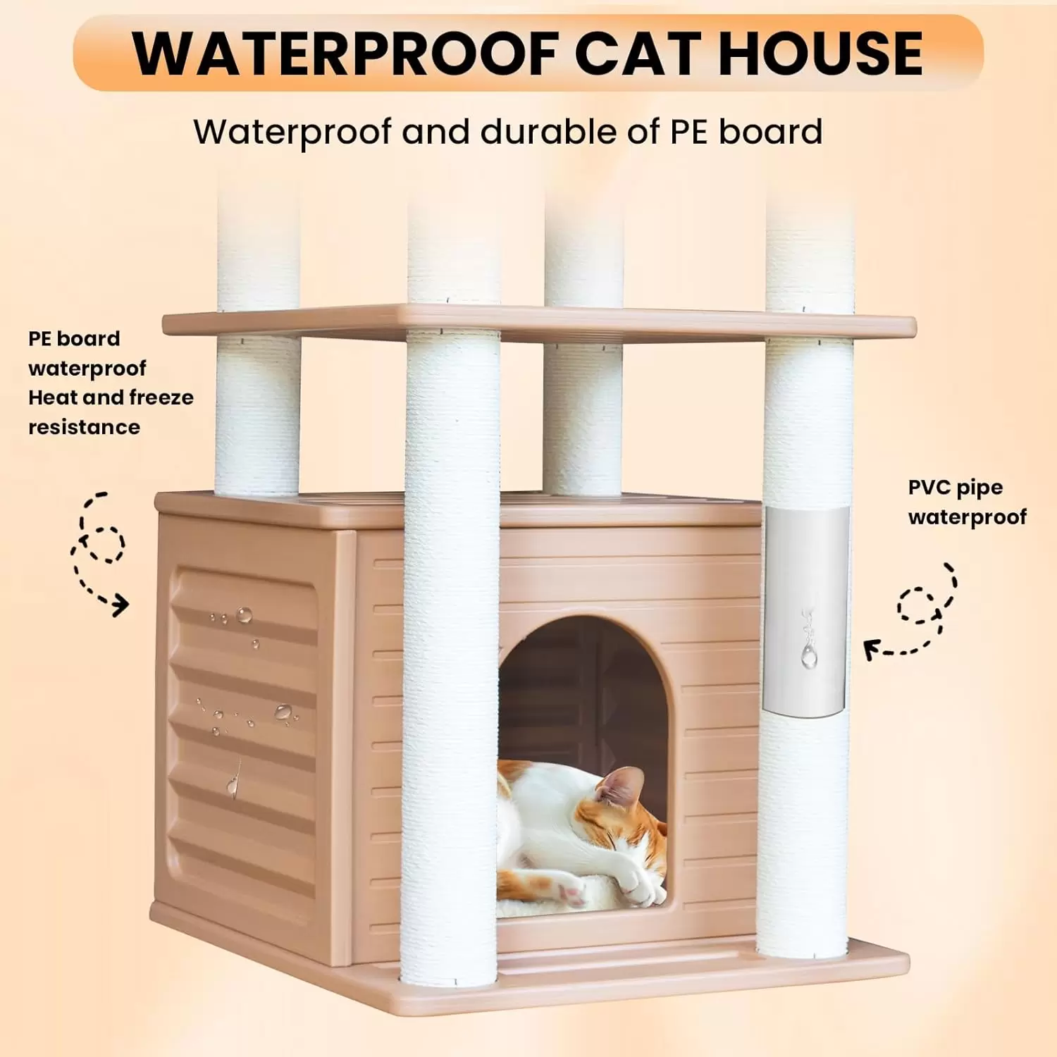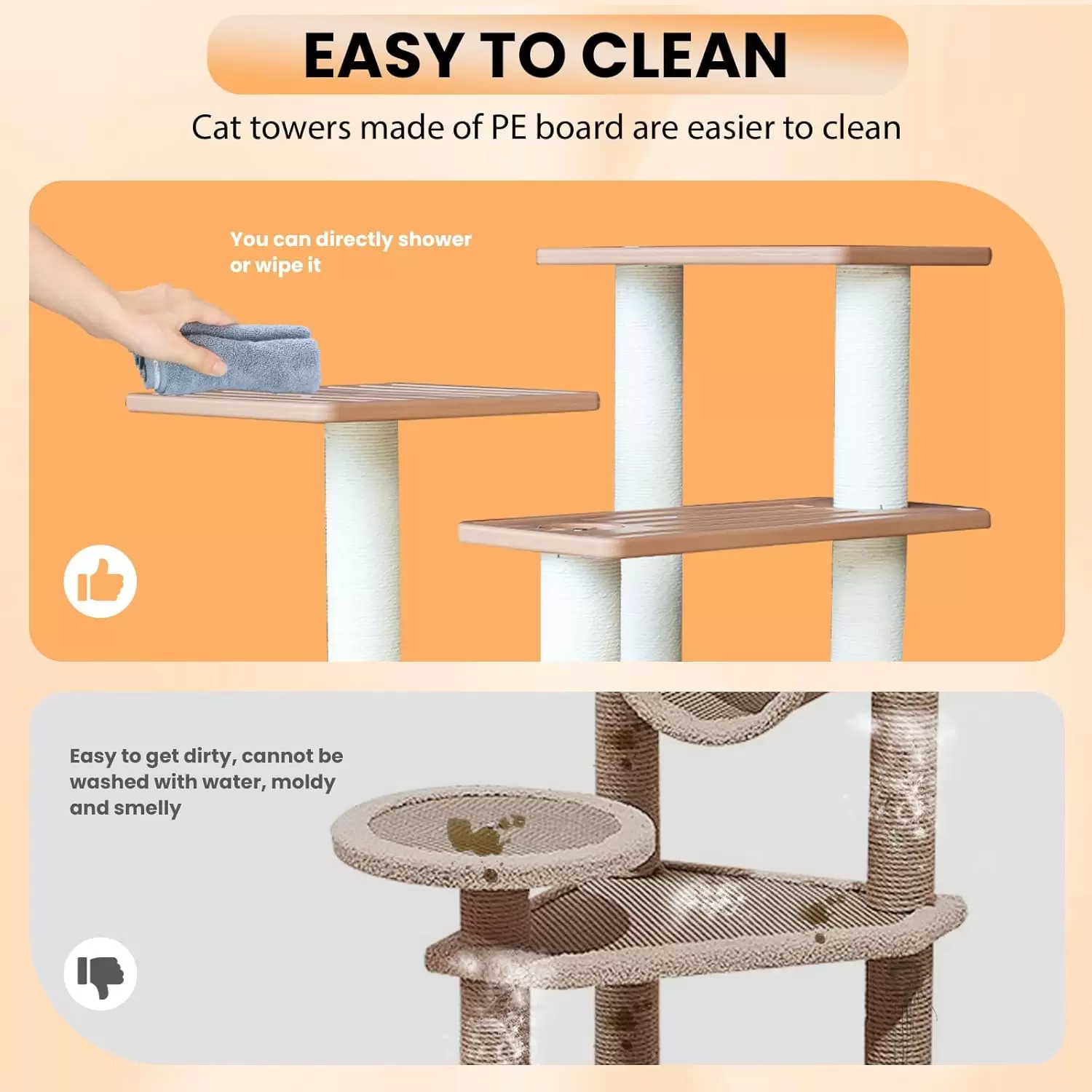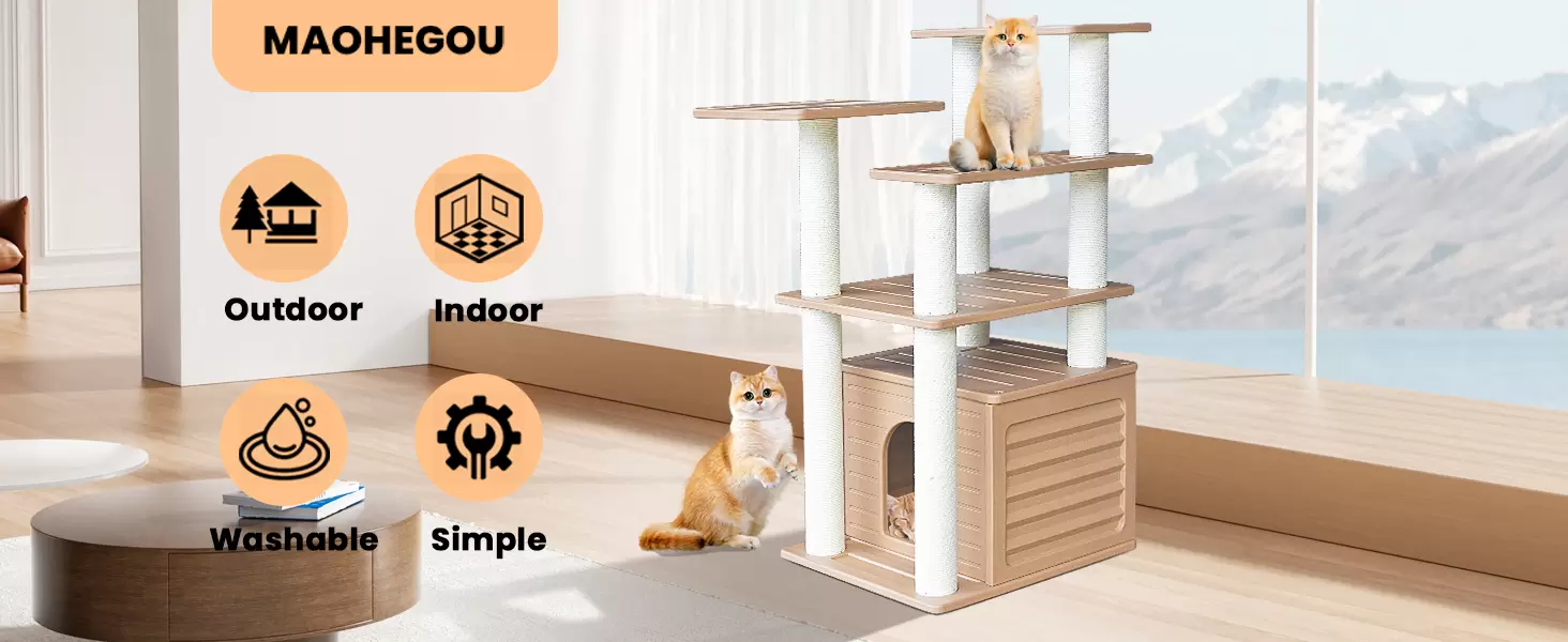 Fácil Limpieza e Higiene Superior: Lavable Directamente: Puede duchar la torre directamente o limpiarla y secarla al sol. Ambiente Sano: El material de polietileno es fácil de limpiar, lo que garantiza un mundo limpio e higiénico para su gato.