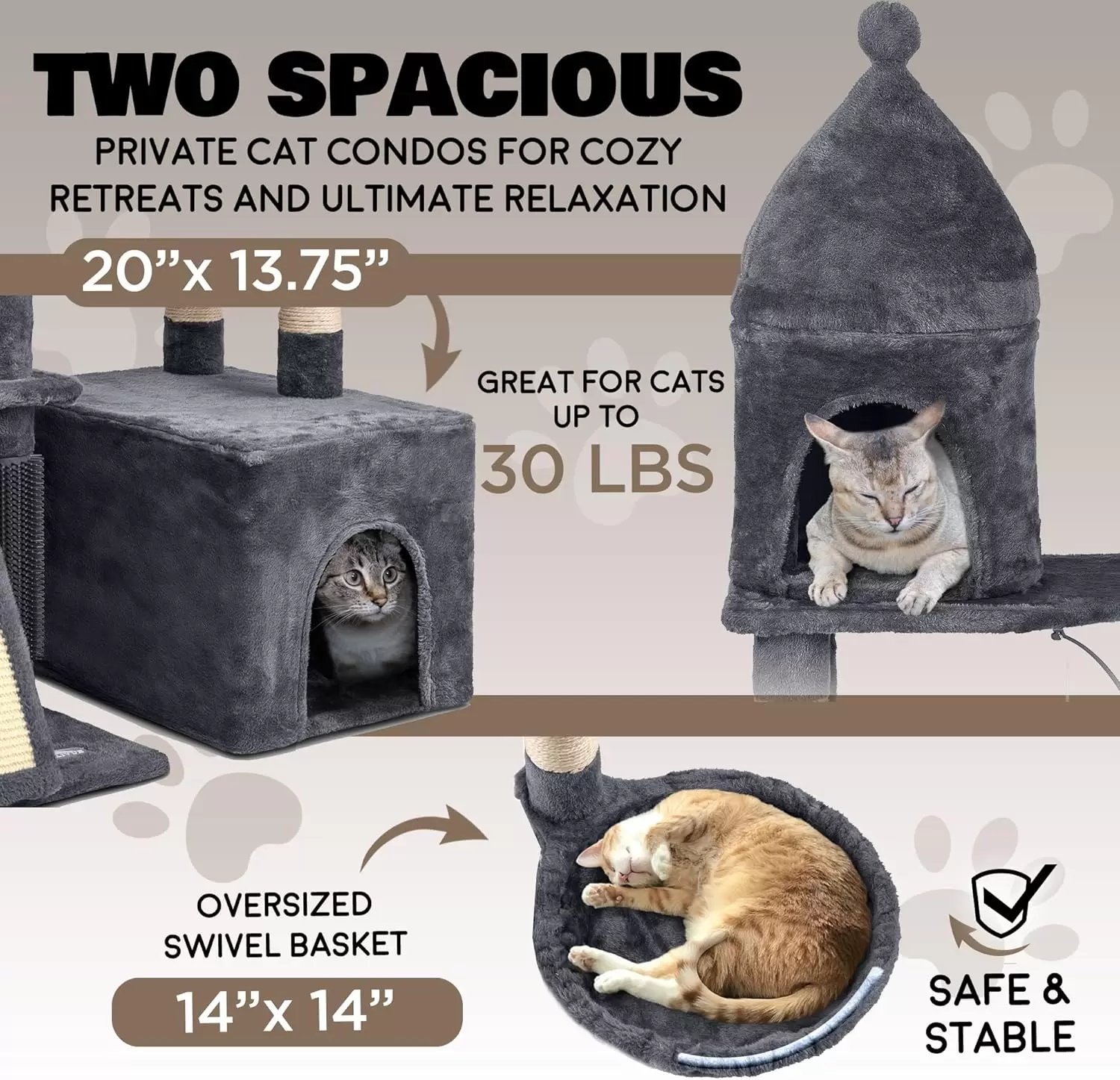 Estimulacion Mental y Fin del Aburrimiento: Equipado con multiples juguetes interactivos y plataformas multinivel, este rascador promueve la estimulacion mental. Mantiene a su gato entretenido y reduce el aburrimiento con cada salto, ofreciendo infinitas oportunidades para explorar en su gran estructura.
