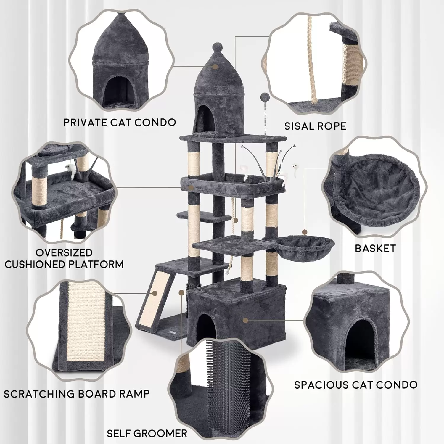 Este rascador gigante es la solucion definitiva para gatos con mucha energia. Con una altura impresionante de 183 centimetros y una base amplia, ofrece un entorno seguro y espacioso diseñado especificamente para soportar gatos grandes y pesados.