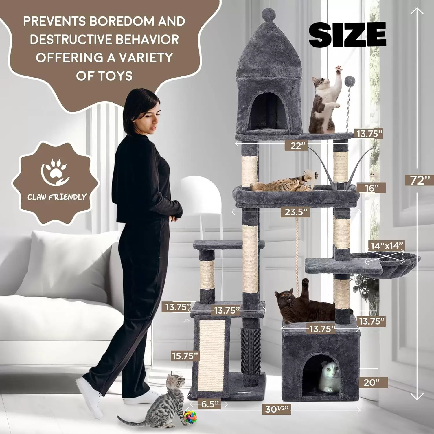 Torre Rascador XL (183x77x51 cm) para Gatos Grandes: Estructura Robusta y Juguetes