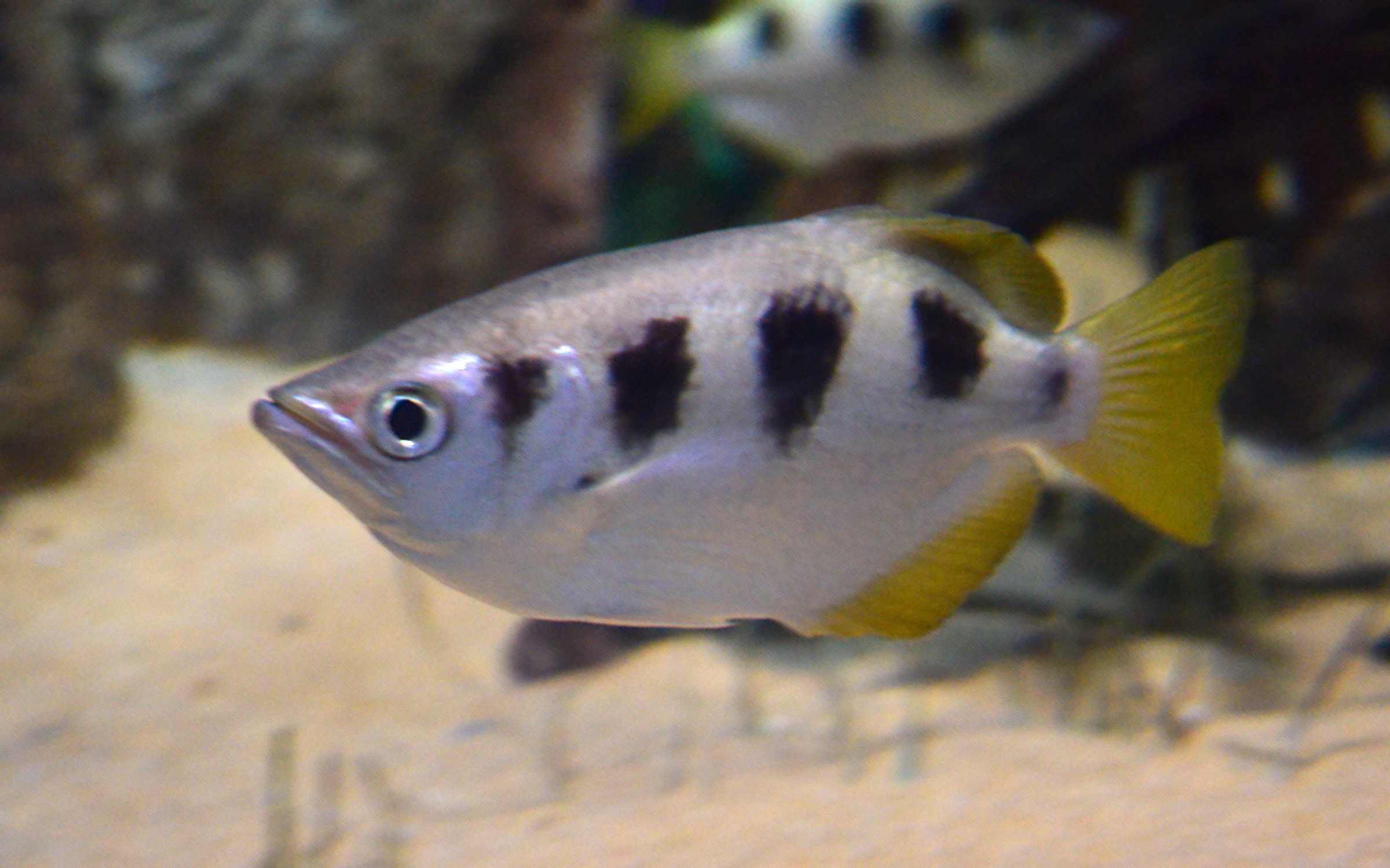 PEZ QUE PODEMOS ENCONTRAR EN AGUA DULCE, SALOBRE Y TAMBIEN COMPLETAMENTE SALADA, SU ESPACIO MAS HABITUAL SON ZONAS DE MANGLARES.