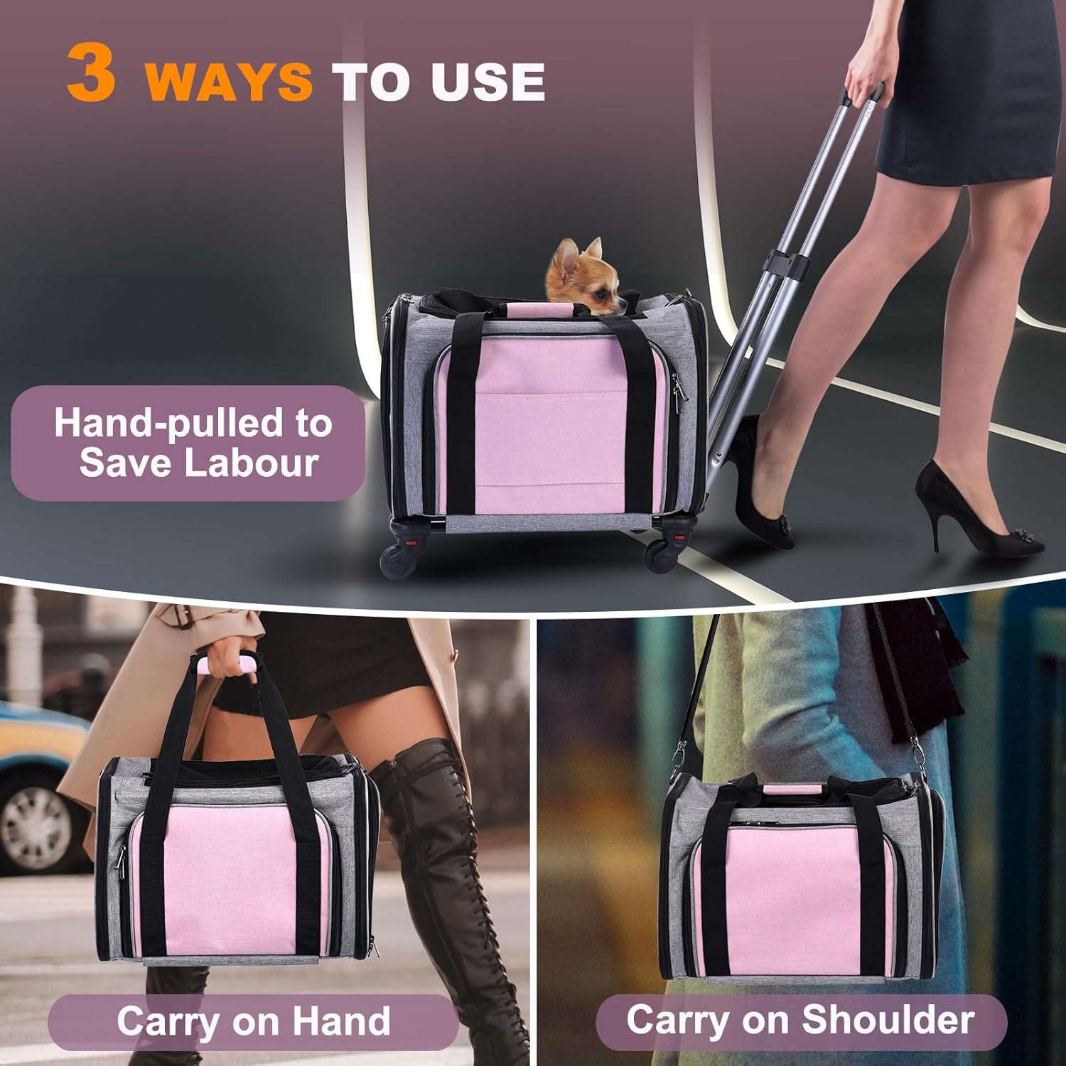Fácil movilidad mientras viajas: el transportador para mascotas con ruedas proporciona una correa de hombro ajustable, llevar en el hombro. La correa de equipaje de calidad te permite asegurar el transportador a tu maleta.