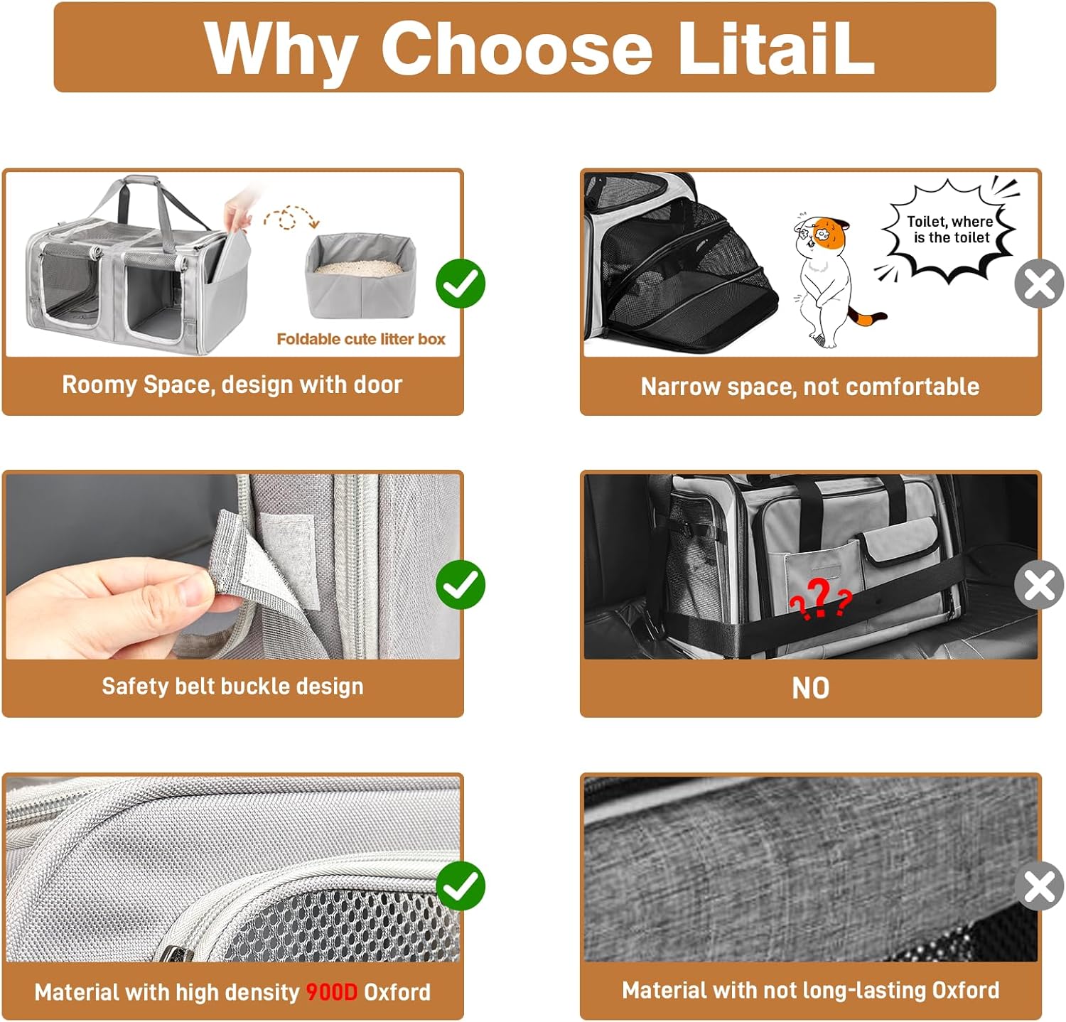 Protección premium: construido con tejido Oxford 900D resistente a la abrasión (revestimiento a prueba de arañazos) para soportar garras y accidentes. Cremalleras de seguridad de doble capa con mecanismo de bloqueo que añaden una garantía de contención adicional