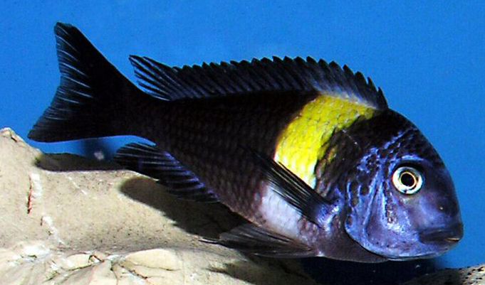 CICLIDO LAGO TANGANICA, QUE CAMBIA SU COLORACION A MEDIDA QUE VA HACIENDOSE ADULTO,PASANDO DE NEGRO PUNTEADO A OSCURO CON FRANJA AMARILLA, MUY PARECIDO AL DUBOISI NORMAL, PERO CON LA CARA MAS AZULADA Y LA FRANJA AMARILLA, MUY BONITO.ALIMENTACION VEGETARIANA TOTAL. TAMAÑO DE 8 A 10 CM.