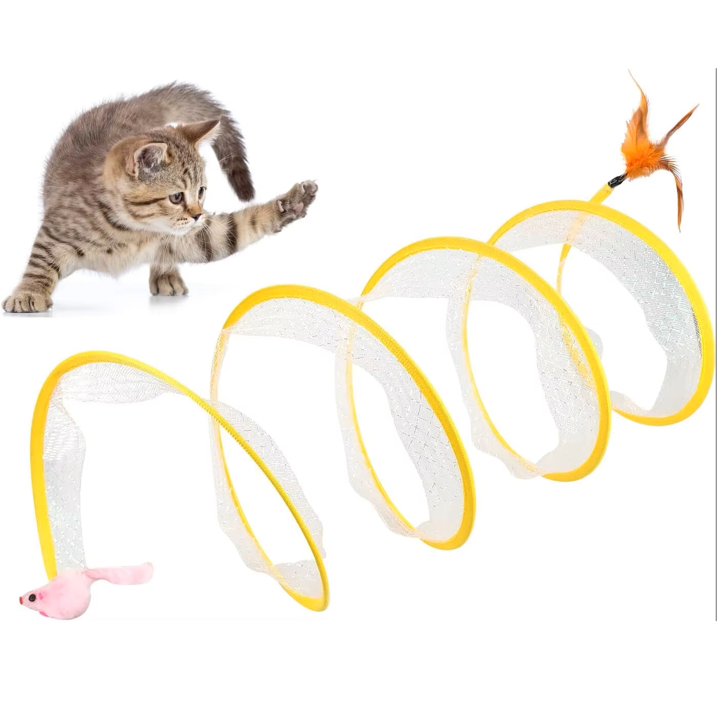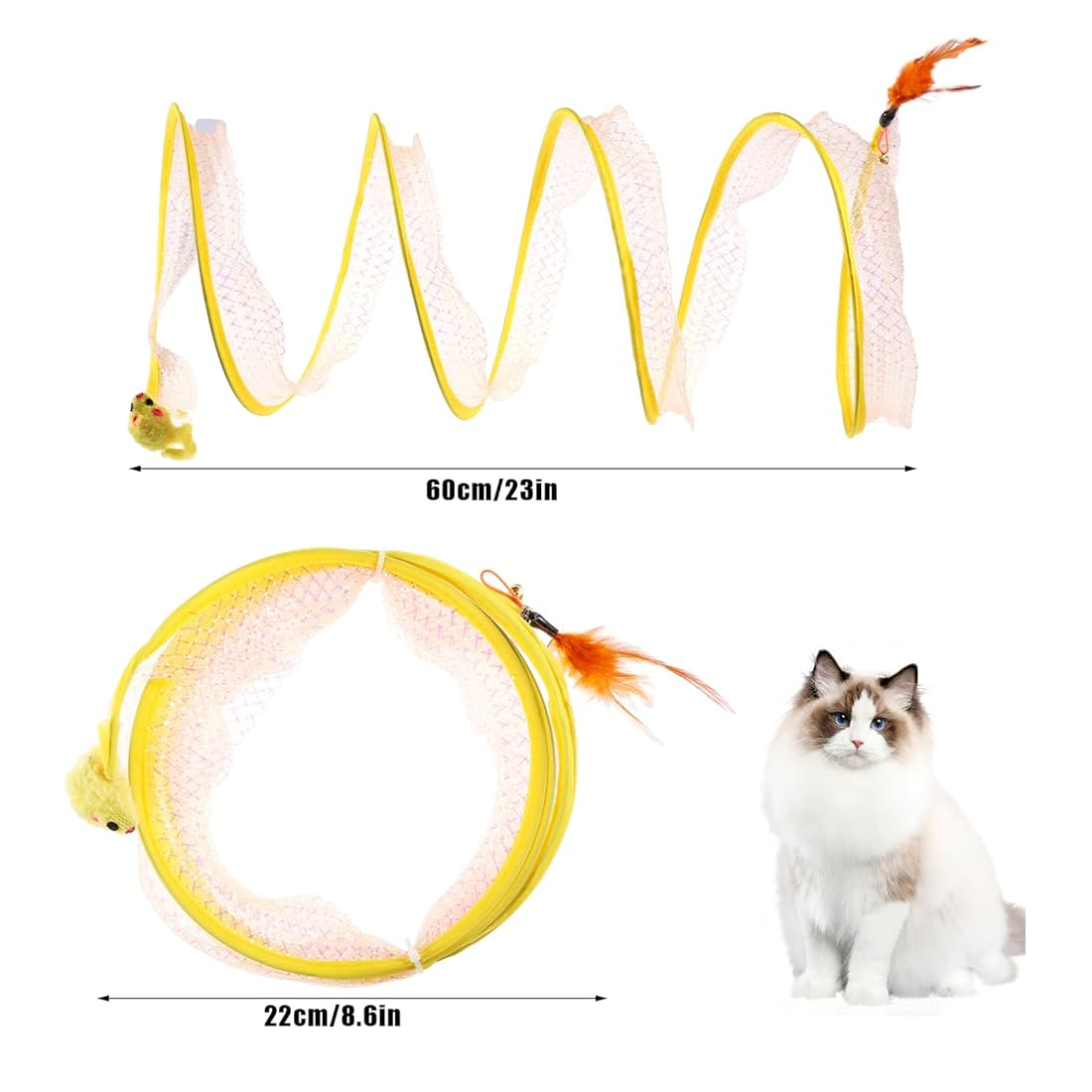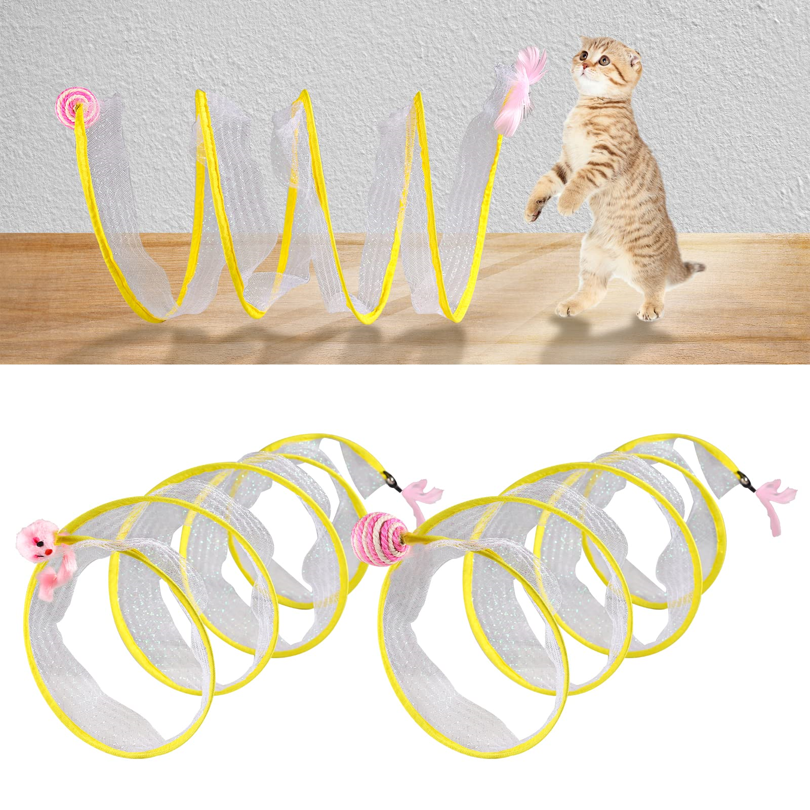• Juega a la diversión: Los gatos son libres de transportar y jugar en el túnel, con juguetes de campana dentro de la red para atraer la atención, e incluso bolas de sisal y ratones de peluche que acompañan a los gatos a jugar.