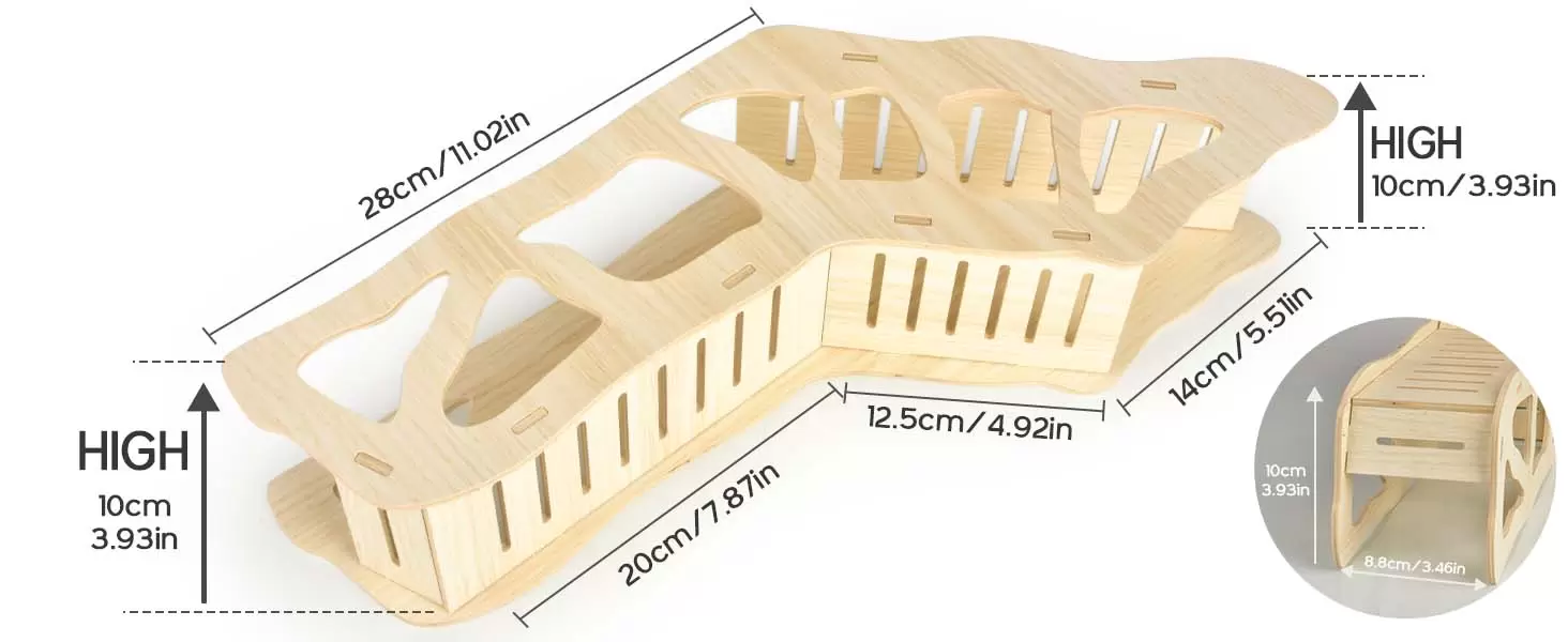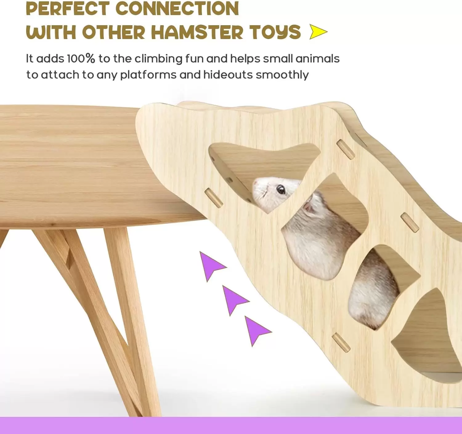 Túnel Escalador (44x20x10 cm) de Madera | Puente de Conexión y Escondite Antiestrés para Hámster