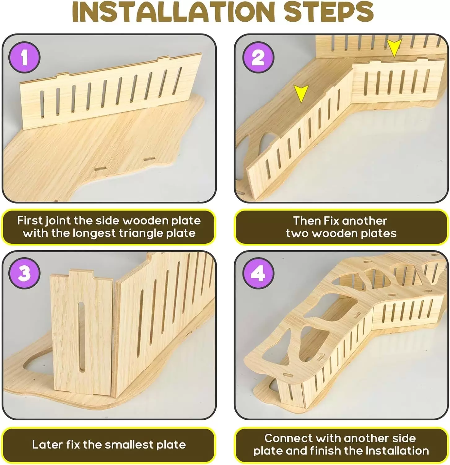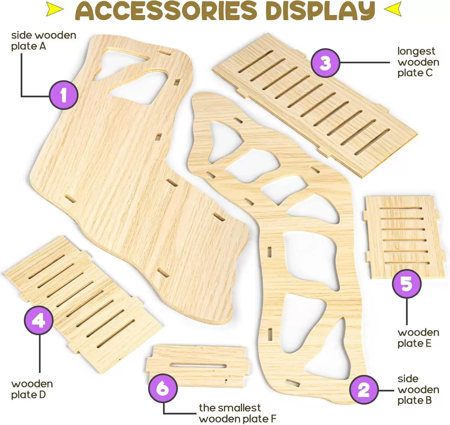 Fácil de instalar: simplemente siga las instrucciones paso a paso como se muestra en la imagen y puede terminar la instalación del escondite del hámster sirio rápidamente. Por favor, mira y combina las juntas durante la instalación para evitar cualquier pieza rota cuando empujas demasiado.