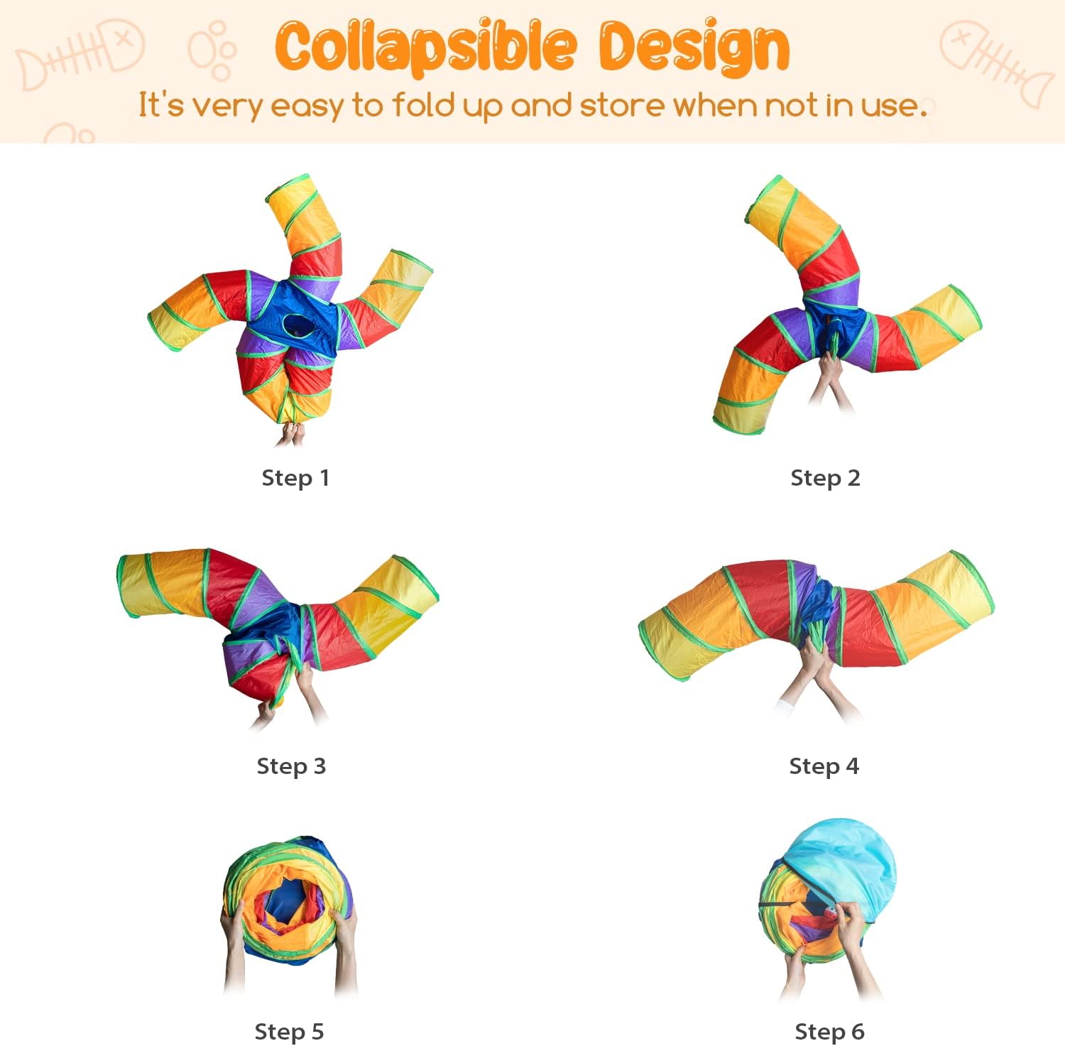 Comodidad de uso: este juguete de túnel para gatos es plegable, es fácil de plegar y almacenar cuando no esté en uso. El diseño plegable ahorra espacio, y nuestro túnel para gatitos viene con una bolsa de almacenamiento, que es portátil para que puedas llevar este juguete para gatos a cualquier lugar
