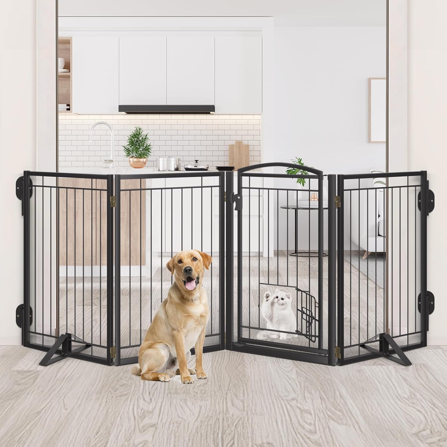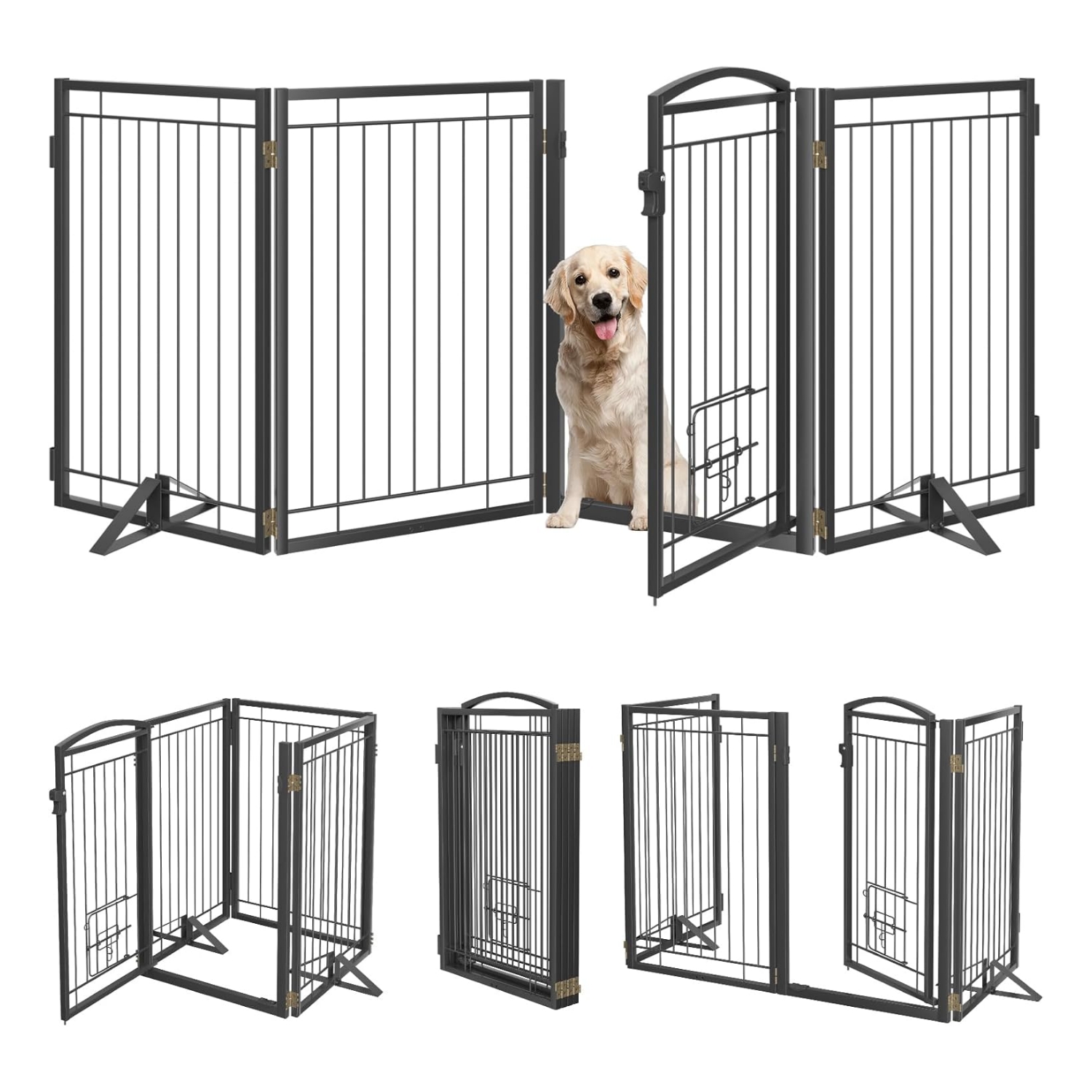 Independiente y fija: la puerta para mascotas se puede colocar de forma independiente como barrera o ensamblarse en una jaula utilizando piezas de pestillo, por lo que es fácil de mover sin dañar las paredes; el tipo fijo se asegura a la pared con soportes de bloqueo, ofreciendo una mayor estabilidad y eficiencia de espacio.