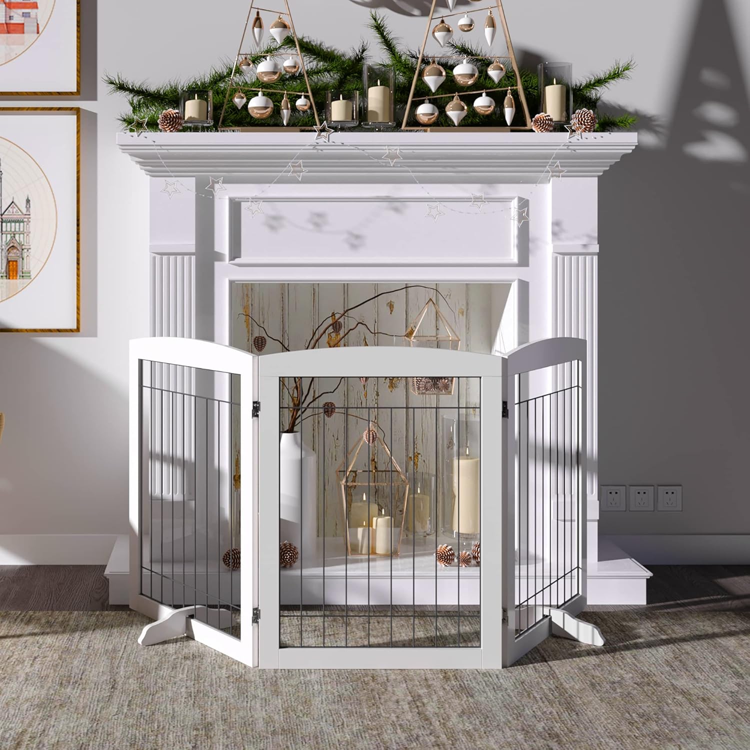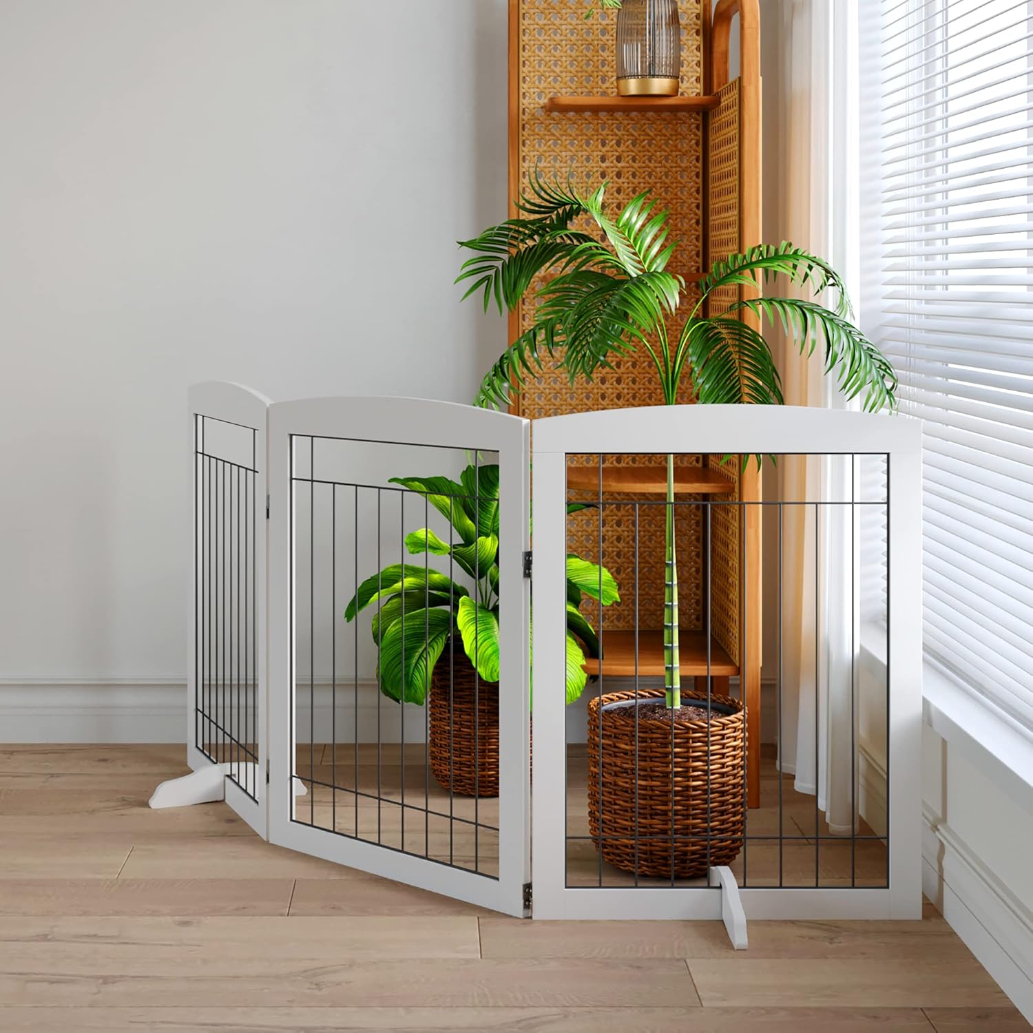 Se pliega para guardar: la puerta para mascotas cuenta con un diseño de estilo acordeón que se pliega para un almacenamiento compacto cuando no está en uso. Cuando está plegada, esta valla expandible es lo suficientemente pequeña como para caber cómodamente en el armario.