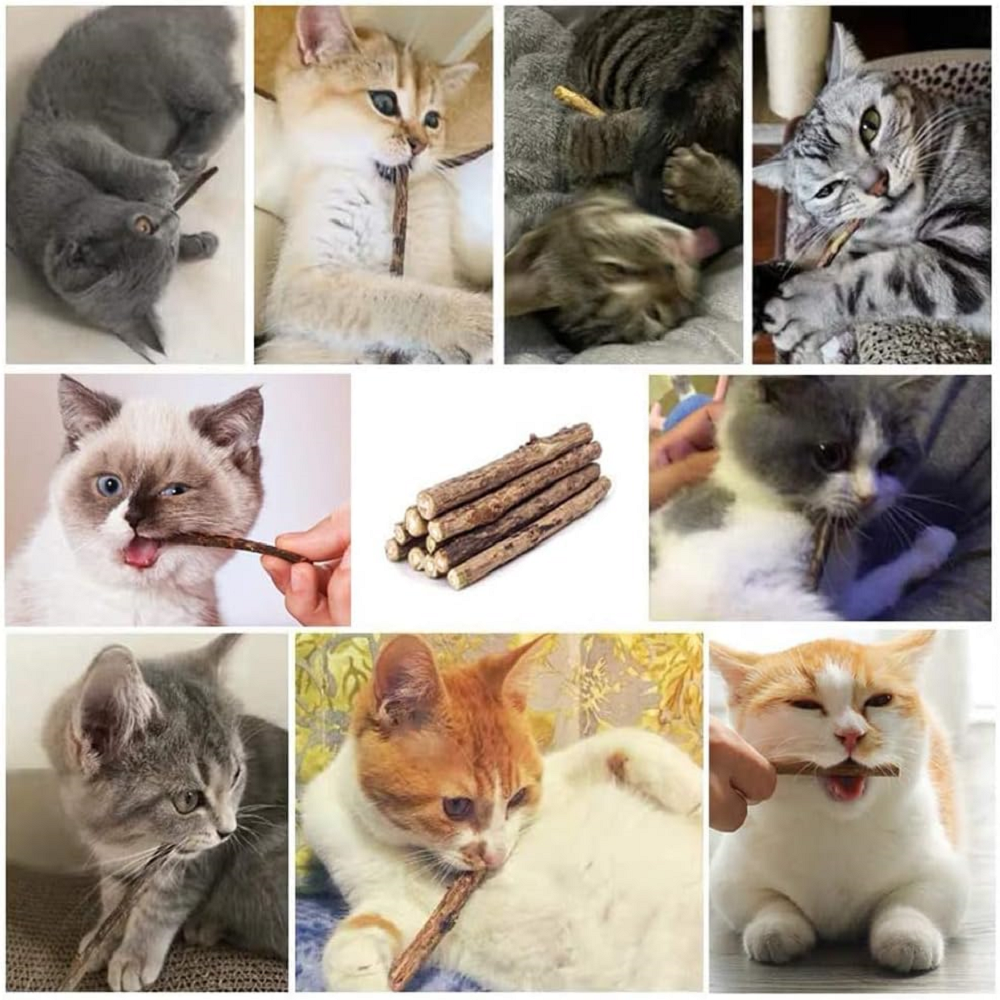 - Haz felices a los gatos: Silvervine son atrayentes efectivos para que los gatos descansen y se muevan. Los palitos Silvervine promueve el metabolismo del gato y estimula el crecimiento.