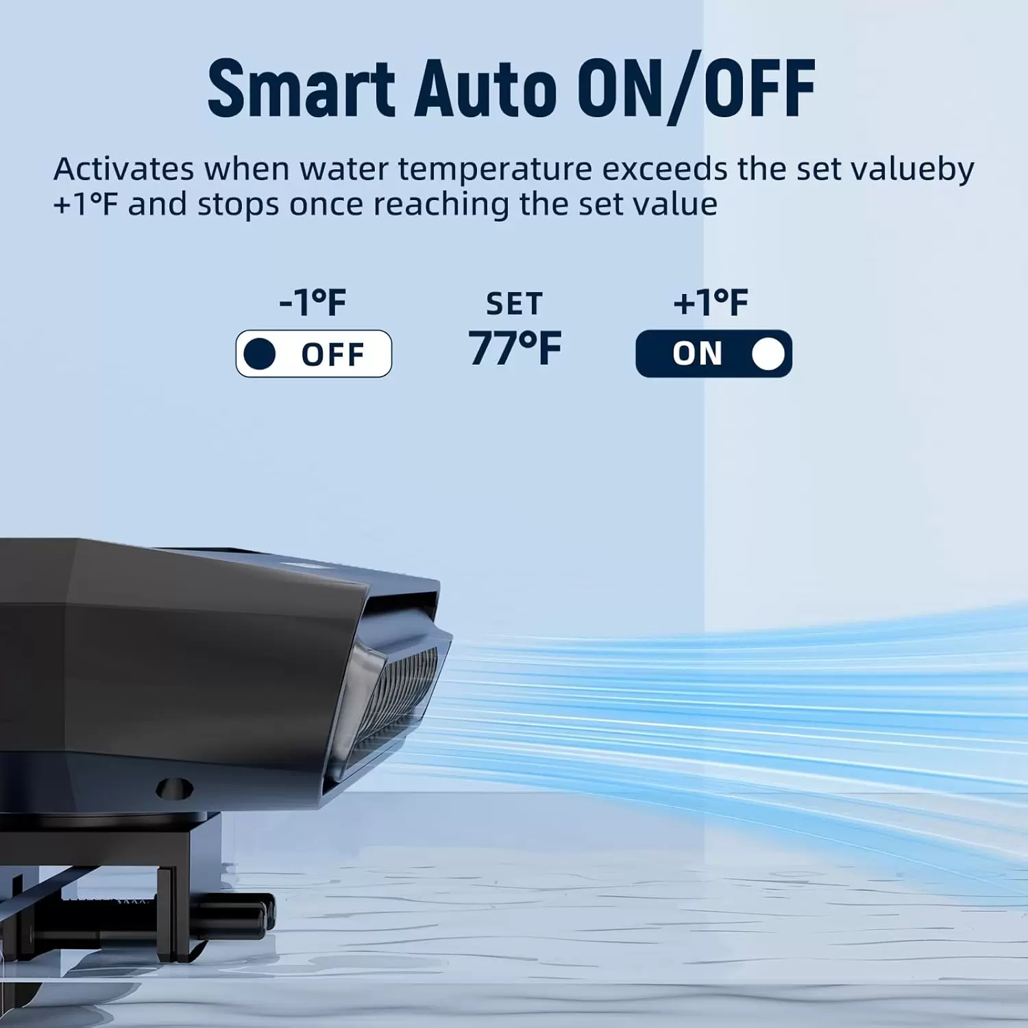 Ventilador inteligente de control de temperatura: el enfriador de acuario cuenta con un controlador de pantalla LED independiente y una sonda de temperatura de alta precisión, con doble pantalla de temperatura establecida y temperatura en tiempo real para una estabilización inteligente de la temperatura del agua. Con un rango ajustable de 59°F-93°F, es adecuado para varias plantas acuáticas y animales que requieren enfriamiento, ofreciendo efectos de enfriamiento visibles. Protección 24/7 para tus mascotas acuáticas.